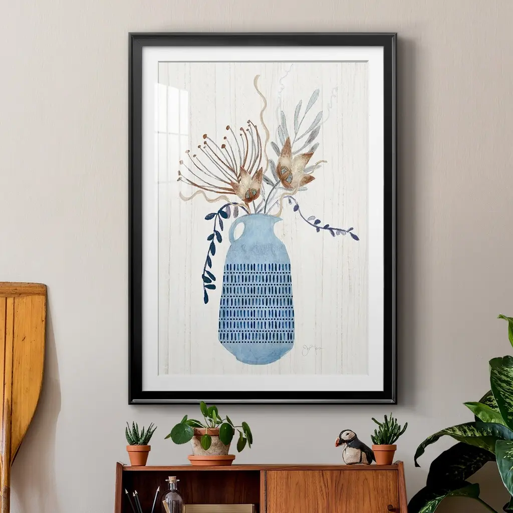 Boho Arrangement I Premium Framed Print - Ready to Hang A Premium Framed Print created to last. Framed in distressed wood and available in an array of sizes and colors Featuring a beveled a solid wood stretcher bar, each piece comes ready to hand 4 SIZES AVAILABLE 30.5''X42.5'' - Overall Size 26.5'X36.5'' - Overall Size 22.5''x30.5'' - Overall Size 18.5''x24.5'' - Overall Size Each piece is made to order. Each piece comes with hanging hardware. Made in the USA Ready to Hang Giclee Paper Print Acrylic Glass Beveled Matt Board