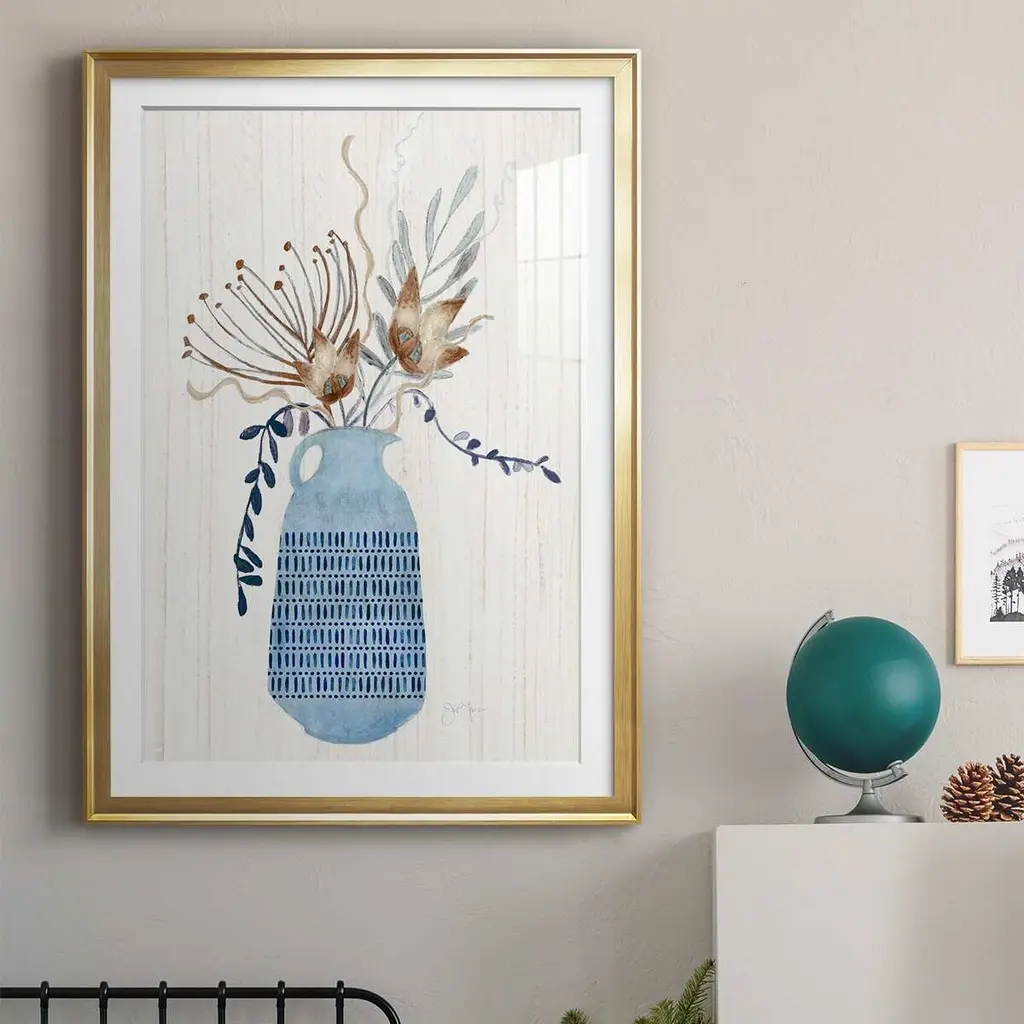Boho Arrangement I Premium Framed Print - Ready to Hang A Premium Framed Print created to last. Framed in distressed wood and available in an array of sizes and colors Featuring a beveled a solid wood stretcher bar, each piece comes ready to hand 4 SIZES AVAILABLE 30.5''X42.5'' - Overall Size 26.5'X36.5'' - Overall Size 22.5''x30.5'' - Overall Size 18.5''x24.5'' - Overall Size Each piece is made to order. Each piece comes with hanging hardware. Made in the USA Ready to Hang Giclee Paper Print Acrylic Glass Beveled Matt Board