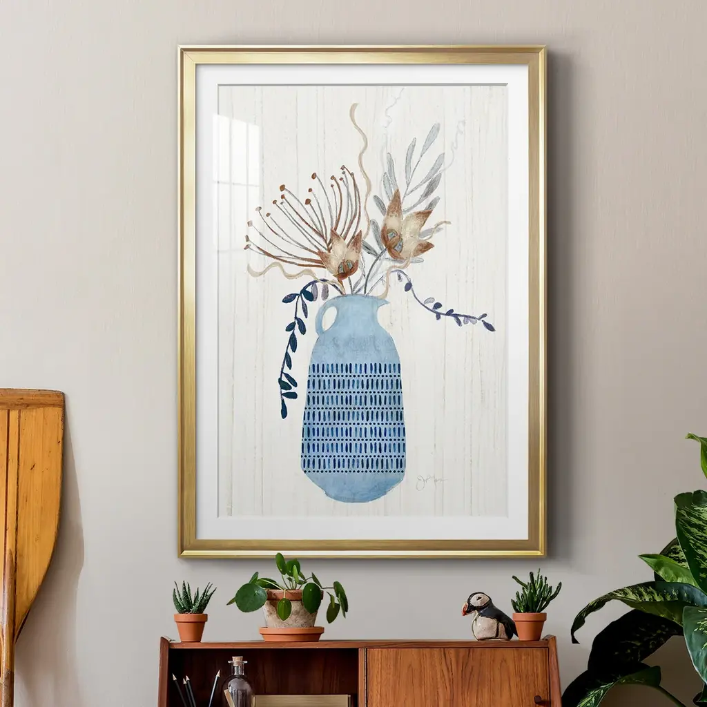 Boho Arrangement I Premium Framed Print - Ready to Hang A Premium Framed Print created to last. Framed in distressed wood and available in an array of sizes and colors Featuring a beveled a solid wood stretcher bar, each piece comes ready to hand 4 SIZES AVAILABLE 30.5''X42.5'' - Overall Size 26.5'X36.5'' - Overall Size 22.5''x30.5'' - Overall Size 18.5''x24.5'' - Overall Size Each piece is made to order. Each piece comes with hanging hardware. Made in the USA Ready to Hang Giclee Paper Print Acrylic Glass Beveled Matt Board
