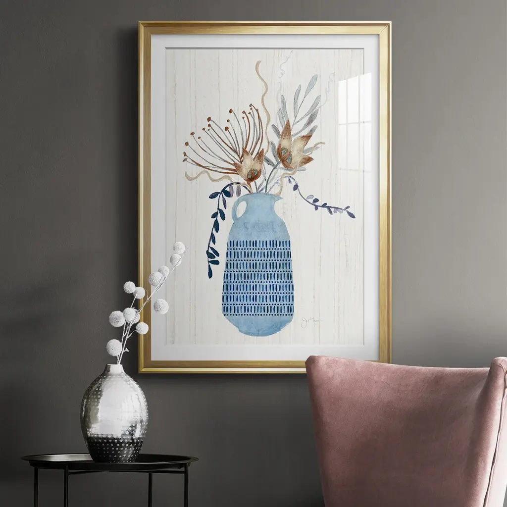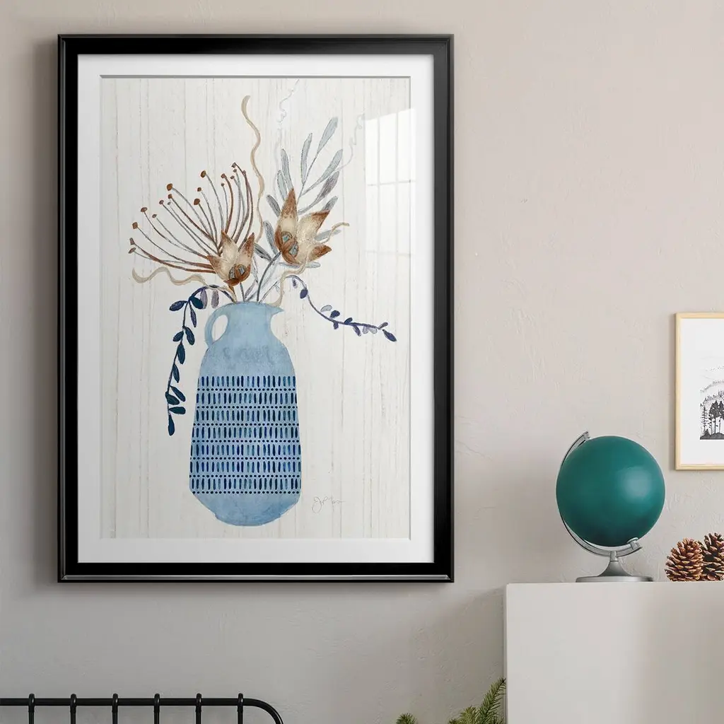 Boho Arrangement I Premium Framed Print - Ready to Hang A Premium Framed Print created to last. Framed in distressed wood and available in an array of sizes and colors Featuring a beveled a solid wood stretcher bar, each piece comes ready to hand 4 SIZES AVAILABLE 30.5''X42.5'' - Overall Size 26.5'X36.5'' - Overall Size 22.5''x30.5'' - Overall Size 18.5''x24.5'' - Overall Size Each piece is made to order. Each piece comes with hanging hardware. Made in the USA Ready to Hang Giclee Paper Print Acrylic Glass Beveled Matt Board