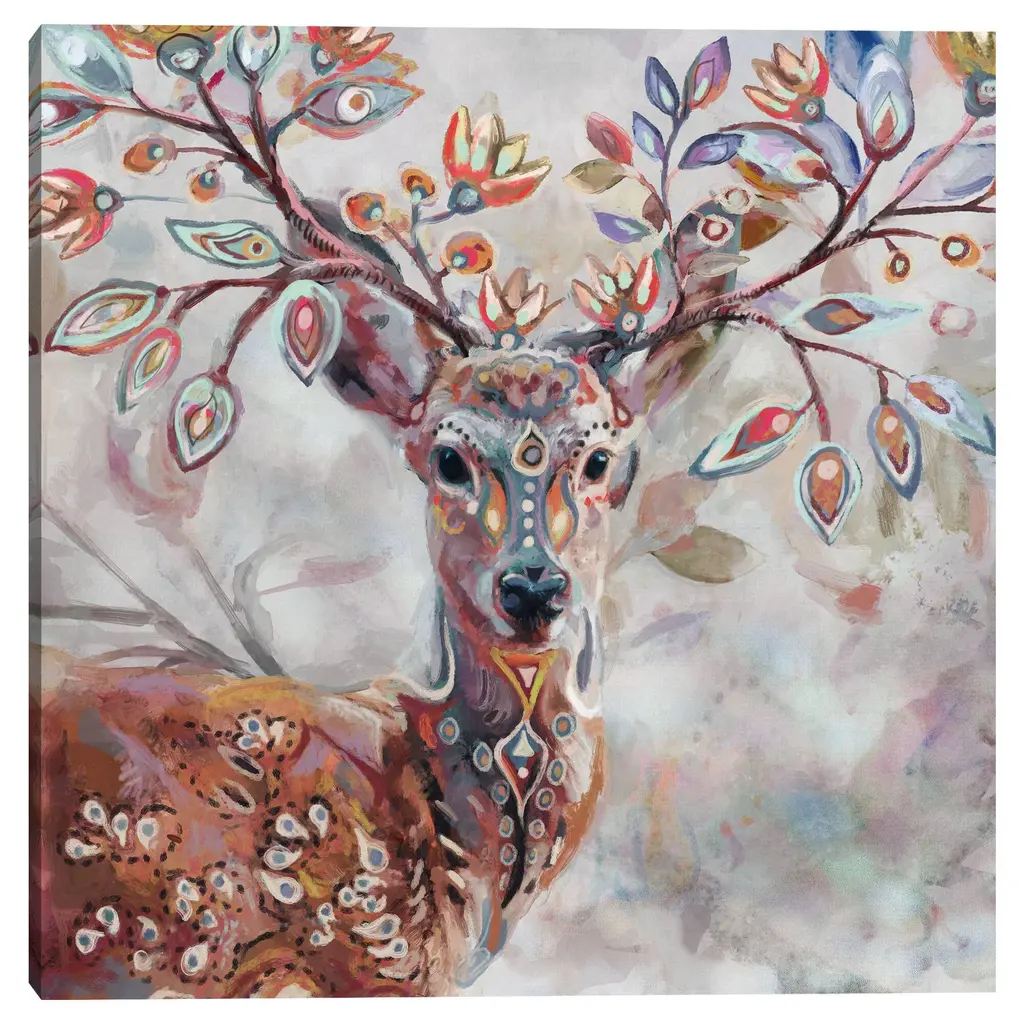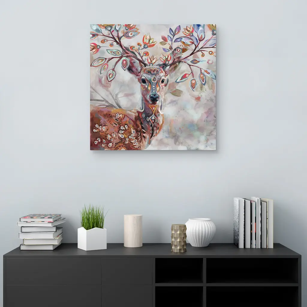 Boho Deer by Studio Arts Canvas Art Print by Studio Arts Canvas Art Print is produced with printing that covers the entirety of the canvas for a sleek and stylish museum-quality look. Our framed prints are made by expert craftsmen who strive to make each canvas the masterpiece