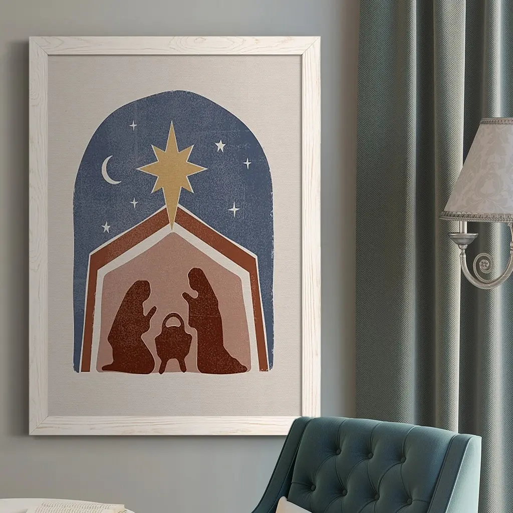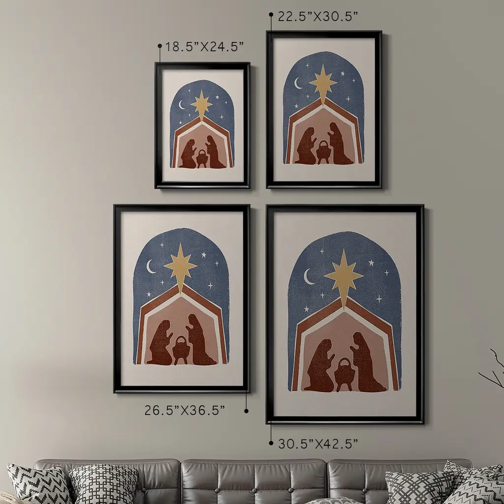 Boho Nativity I Premium Framed Print - Ready to Hang A Premium Framed Print created to last. Framed in distressed wood and available in an array of sizes and colors Featuring a beveled a solid wood stretcher bar, each piece comes ready to hand 4 SIZES AVAILABLE 30.5''X42.5'' - Overall Size 26.5'X36.5'' - Overall Size 22.5''x30.5'' - Overall Size 18.5''x24.5'' - Overall Size Each piece is made to order. Each piece comes with hanging hardware. Made in the USA Ready to Hang