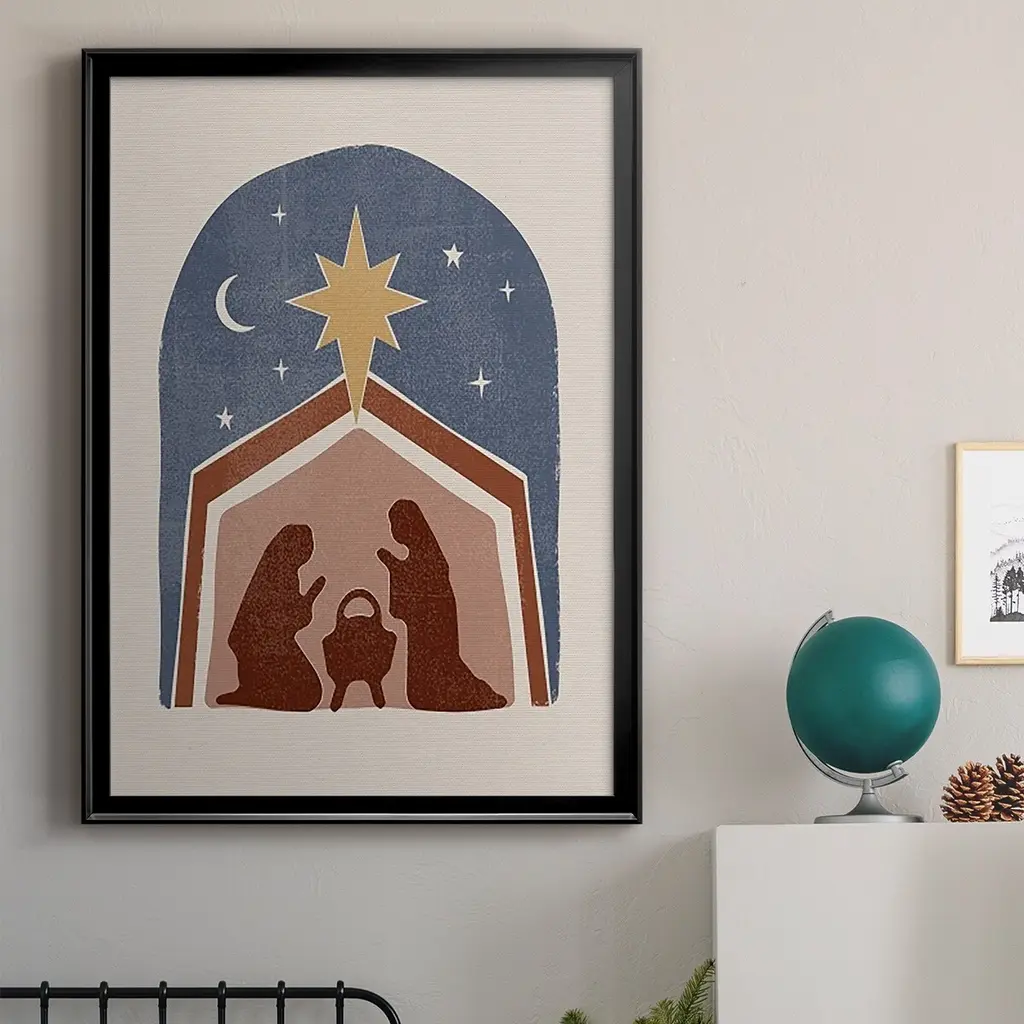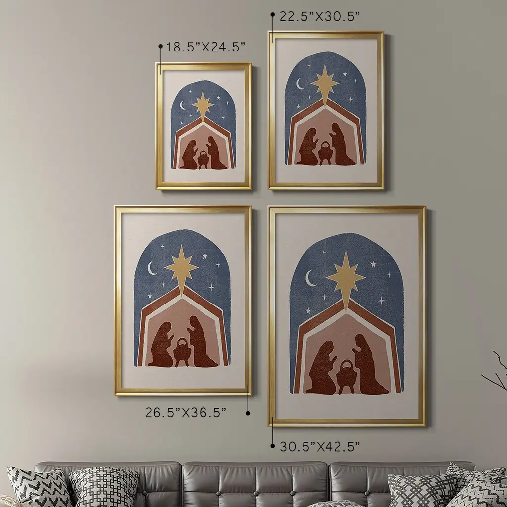 Boho Nativity I Premium Framed Print - Ready to Hang A Premium Framed Print created to last. Framed in distressed wood and available in an array of sizes and colors Featuring a beveled a solid wood stretcher bar, each piece comes ready to hand 4 SIZES AVAILABLE 30.5''X42.5'' - Overall Size 26.5'X36.5'' - Overall Size 22.5''x30.5'' - Overall Size 18.5''x24.5'' - Overall Size Each piece is made to order. Each piece comes with hanging hardware. Made in the USA Ready to Hang