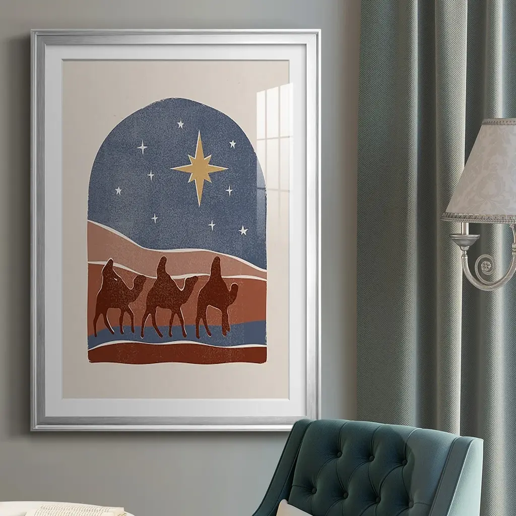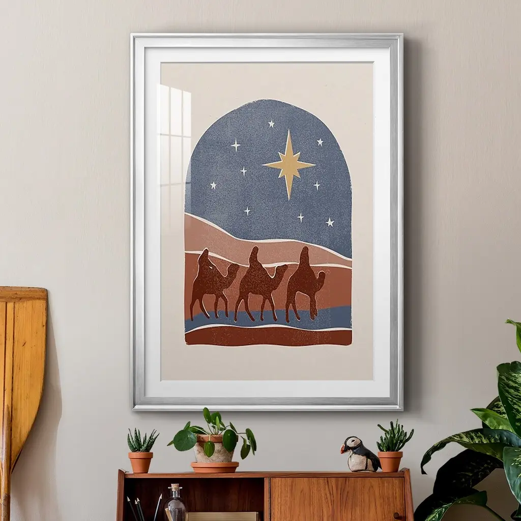 Boho Nativity II Premium Framed Print - Ready to Hang A Premium Framed Print created to last. Framed in distressed wood and available in an array of sizes and colors Featuring a beveled a solid wood stretcher bar, each piece comes ready to hand 4 SIZES AVAILABLE 30.5''X42.5'' - Overall Size 26.5'X36.5'' - Overall Size 22.5''x30.5'' - Overall Size 18.5''x24.5'' - Overall Size Each piece is made to order. Each piece comes with hanging hardware. Made in the USA Ready to Hang Giclee Paper Print Acrylic Glass Beveled Matt Board