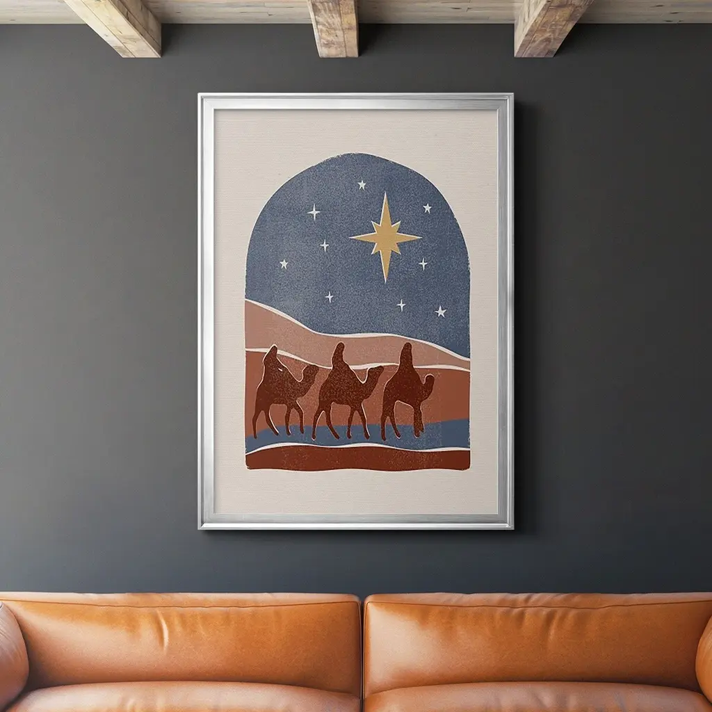 Boho Nativity II Premium Framed Print - Ready to Hang A Premium Framed Print created to last. Framed in distressed wood and available in an array of sizes and colors Featuring a beveled a solid wood stretcher bar, each piece comes ready to hand 4 SIZES AVAILABLE 30.5''X42.5'' - Overall Size 26.5'X36.5'' - Overall Size 22.5''x30.5'' - Overall Size 18.5''x24.5'' - Overall Size Each piece is made to order. Each piece comes with hanging hardware. Made in the USA Ready to Hang
