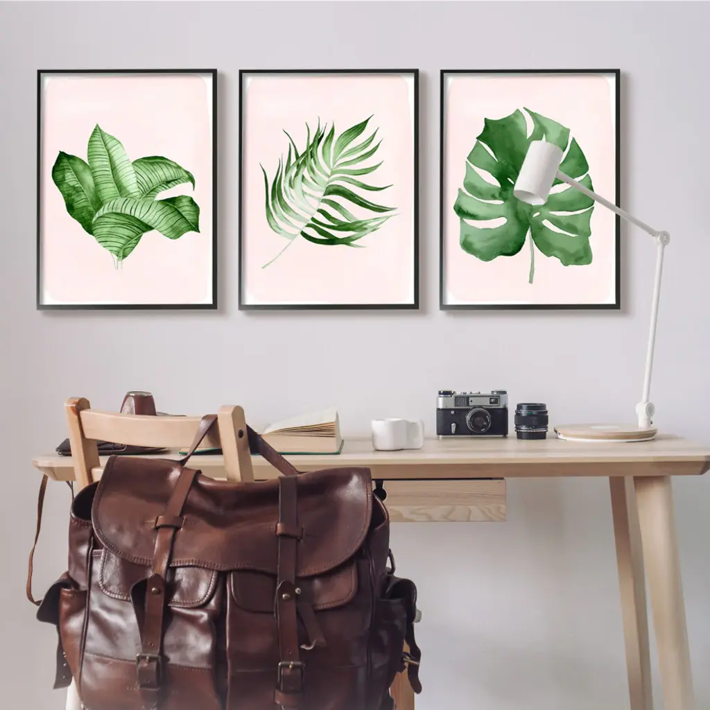 Boho Palm Leaves Over Pink Modern Tropical Plants,3pc, Each 24 X 30