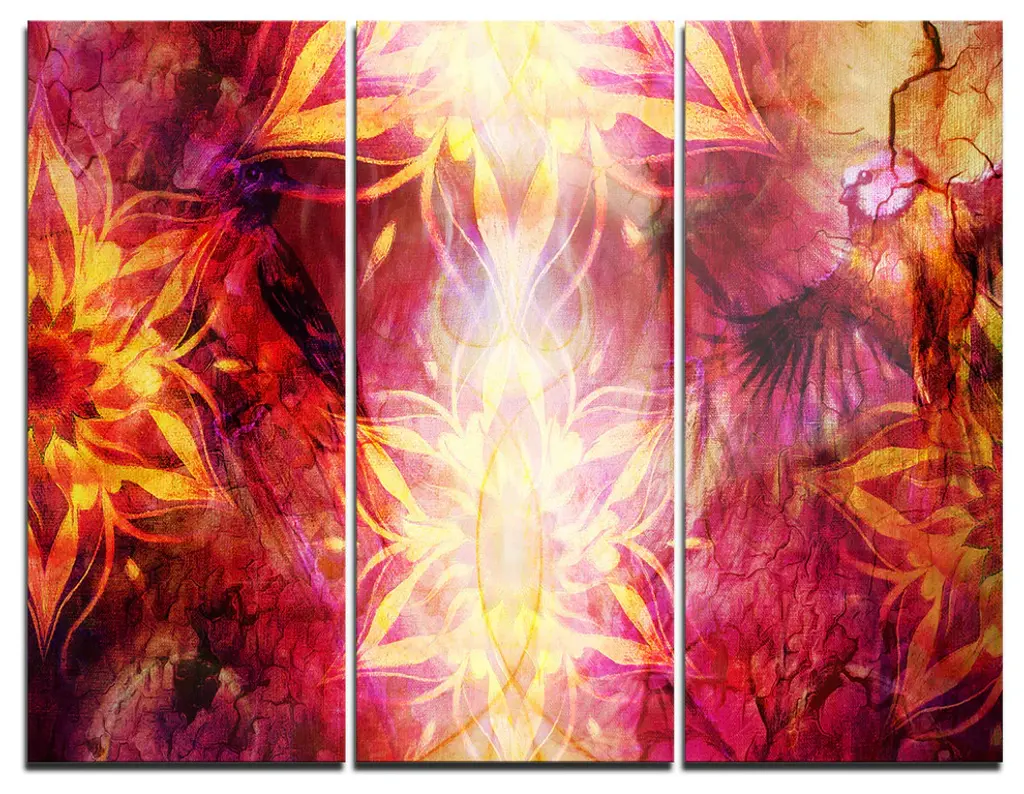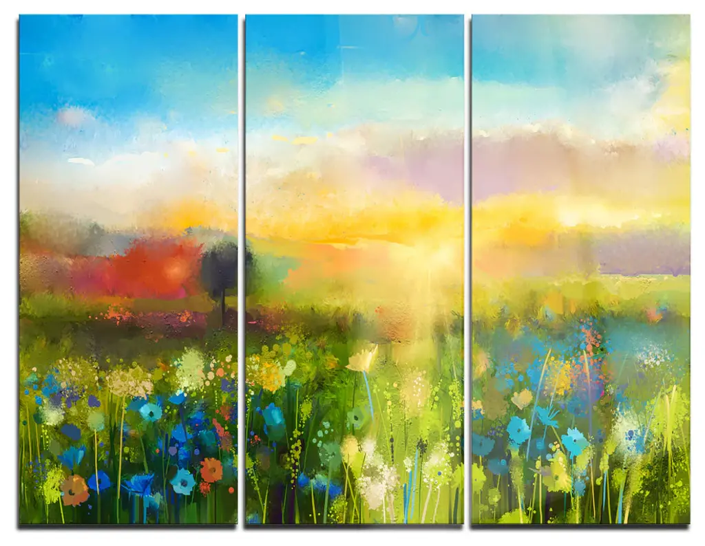 "Bokeh Flowers Seamless" Glossy Metal Wall Art, 3 Panels, 36"x28"