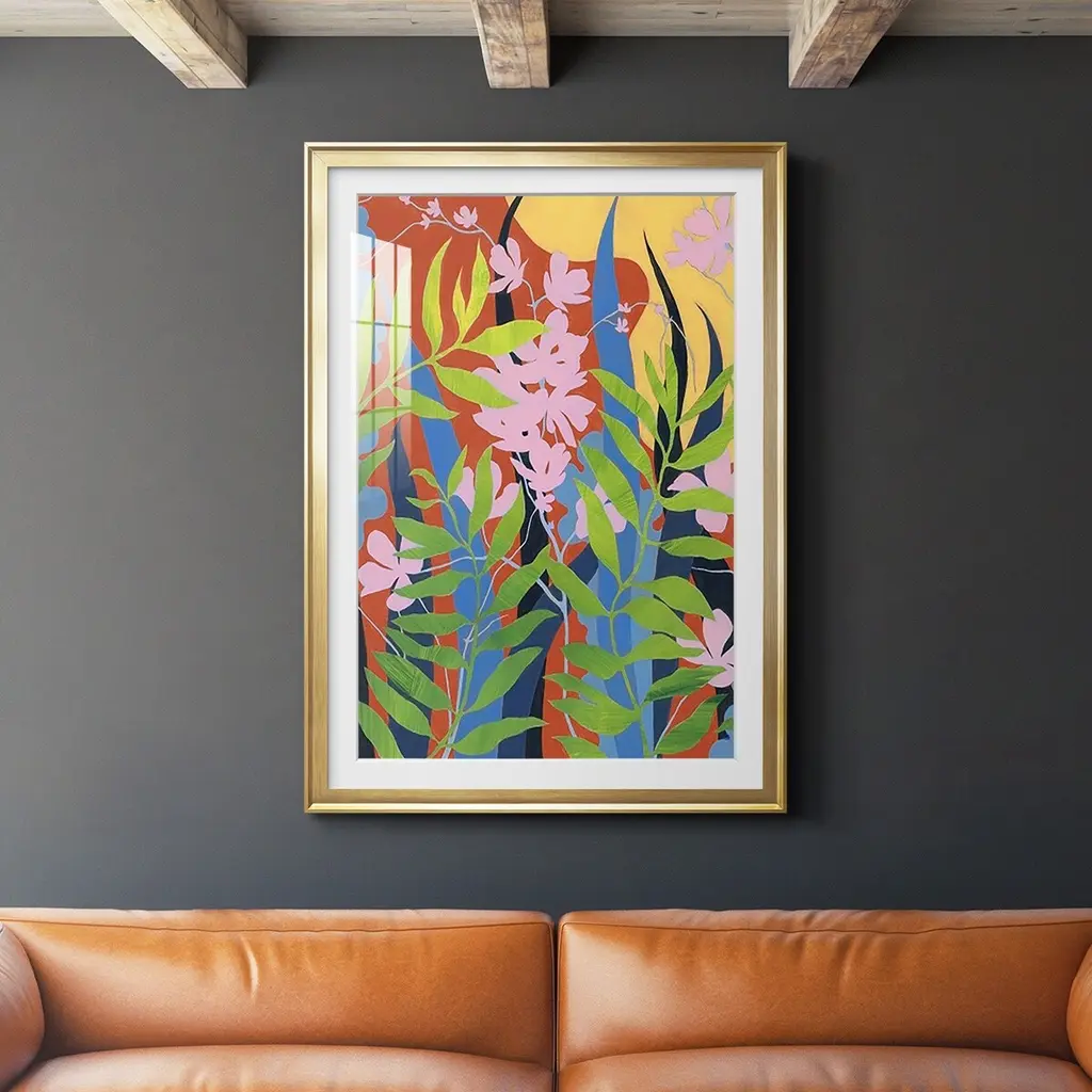 Bold Bright & Wild I Premium Framed Print - Ready to Hang A Premium Framed Print created to last. Framed in distressed wood and available in an array of sizes and colors Featuring a beveled a solid wood stretcher bar, each piece comes ready to hand 4 SIZES AVAILABLE 30.5''X42.5'' - Overall Size 26.5'X36.5'' - Overall Size 22.5''x30.5'' - Overall Size 18.5''x24.5'' - Overall Size Each piece is made to order. Each piece comes with hanging hardware. Made in the USA Ready to Hang Giclee Paper Print Acrylic Glass Beveled Matt Board