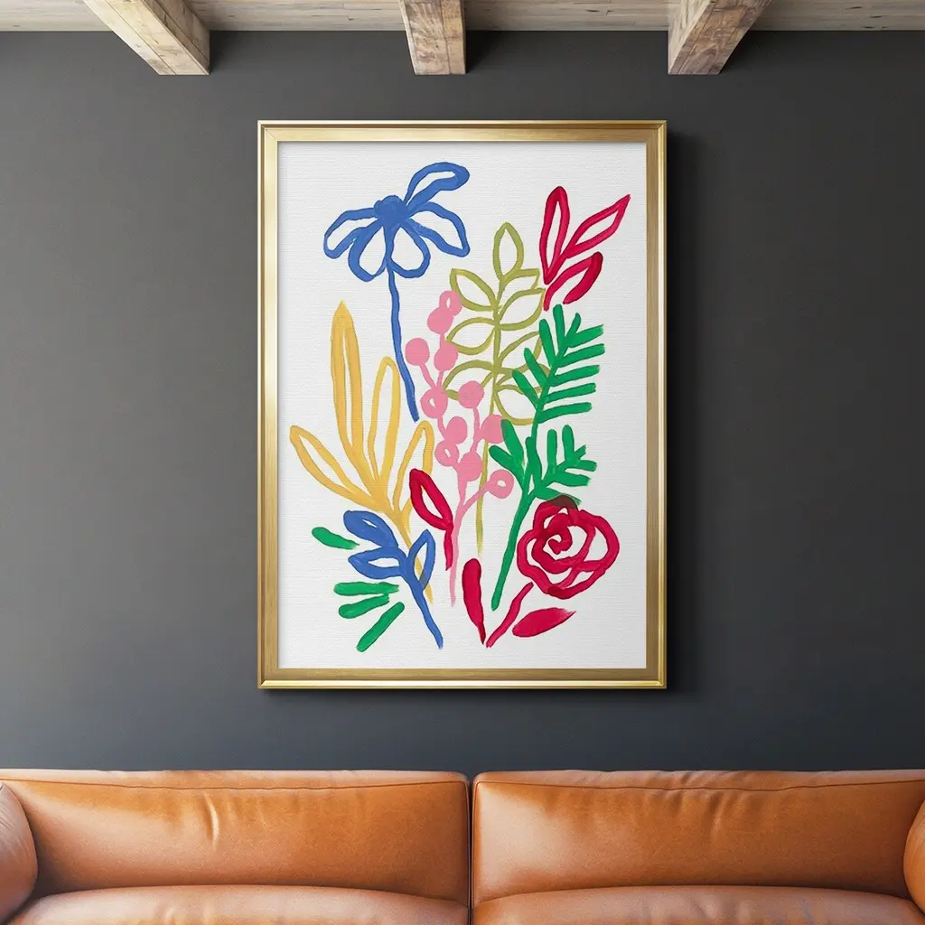 Bold Brushstroke Blooms I Premium Framed Print - Ready to Hang A Premium Framed Print created to last. Framed in distressed wood and available in an array of sizes and colors Featuring a beveled a solid wood stretcher bar, each piece comes ready to hand 4 SIZES AVAILABLE 30.5''X42.5'' - Overall Size 26.5'X36.5'' - Overall Size 22.5''x30.5'' - Overall Size 18.5''x24.5'' - Overall Size Each piece is made to order. Each piece comes with hanging hardware. Made in the USA Ready to Hang