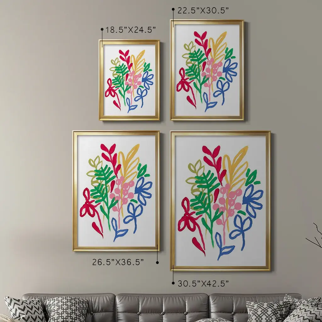 Bold Brushstroke Blooms II Premium Framed Print - Ready to Hang A Premium Framed Print created to last. Framed in distressed wood and available in an array of sizes and colors Featuring a beveled a solid wood stretcher bar, each piece comes ready to hand 4 SIZES AVAILABLE 30.5''X42.5'' - Overall Size 26.5'X36.5'' - Overall Size 22.5''x30.5'' - Overall Size 18.5''x24.5'' - Overall Size Each piece is made to order. Each piece comes with hanging hardware. Made in the USA Ready to Hang