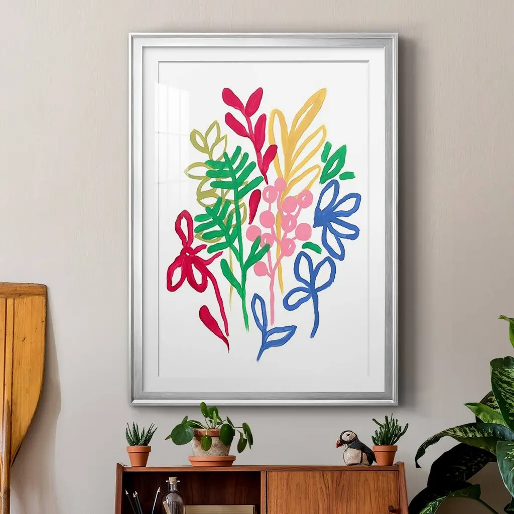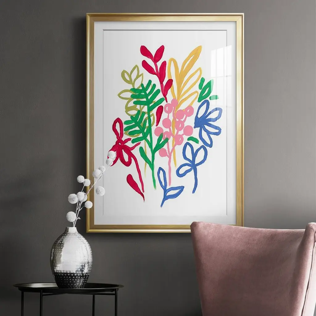 Bold Brushstroke Blooms II Premium Framed Print - Ready to Hang A Premium Framed Print created to last. Framed in distressed wood and available in an array of sizes and colors Featuring a beveled a solid wood stretcher bar, each piece comes ready to hand 4 SIZES AVAILABLE 30.5''X42.5'' - Overall Size 26.5'X36.5'' - Overall Size 22.5''x30.5'' - Overall Size 18.5''x24.5'' - Overall Size Each piece is made to order. Each piece comes with hanging hardware. Made in the USA Ready to Hang Giclee Paper Print Acrylic Glass Beveled Matt Board