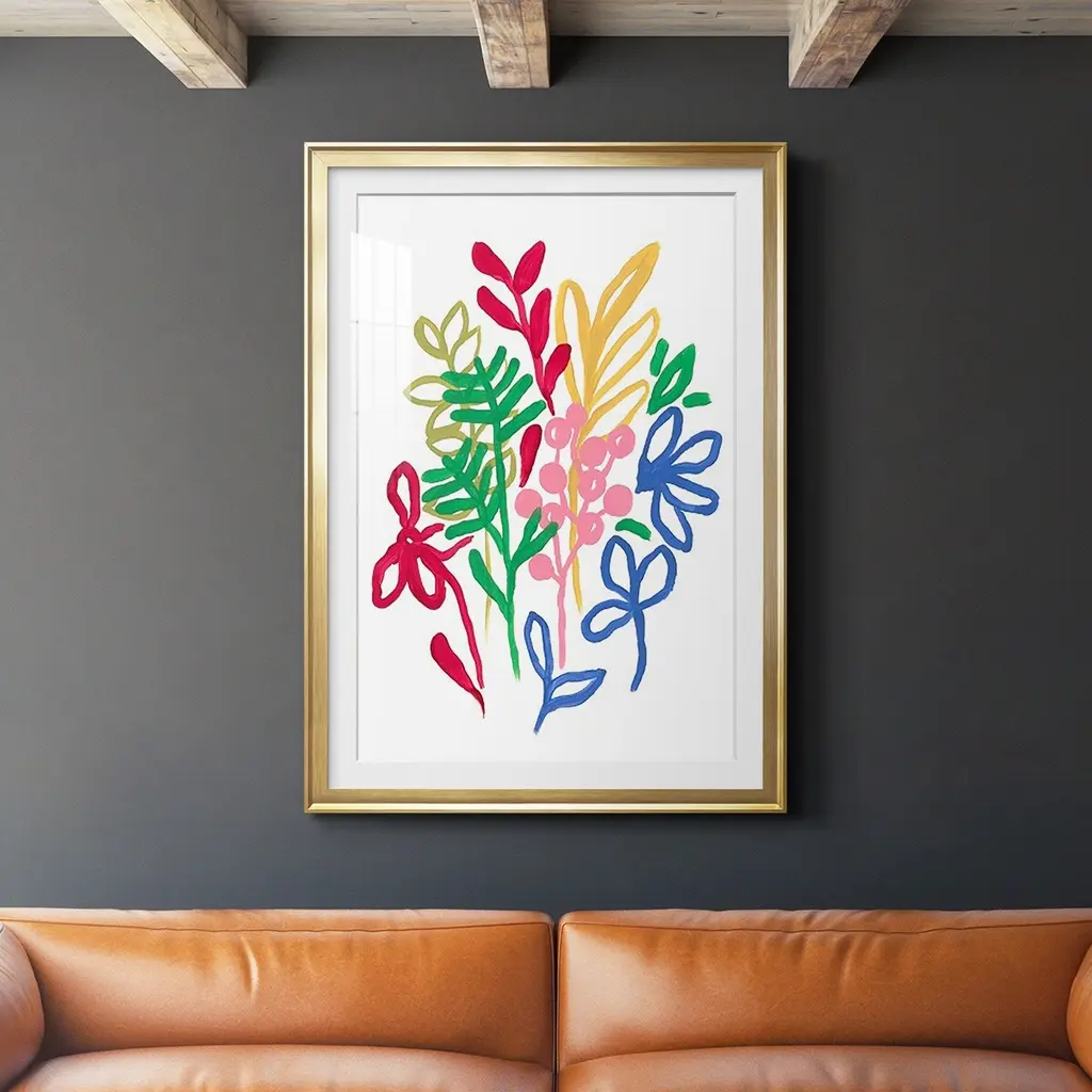 Bold Brushstroke Blooms II Premium Framed Print - Ready to Hang A Premium Framed Print created to last. Framed in distressed wood and available in an array of sizes and colors Featuring a beveled a solid wood stretcher bar, each piece comes ready to hand 4 SIZES AVAILABLE 30.5''X42.5'' - Overall Size 26.5'X36.5'' - Overall Size 22.5''x30.5'' - Overall Size 18.5''x24.5'' - Overall Size Each piece is made to order. Each piece comes with hanging hardware. Made in the USA Ready to Hang Giclee Paper Print Acrylic Glass Beveled Matt Board