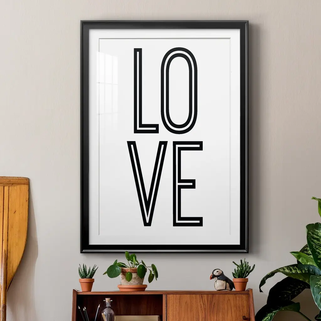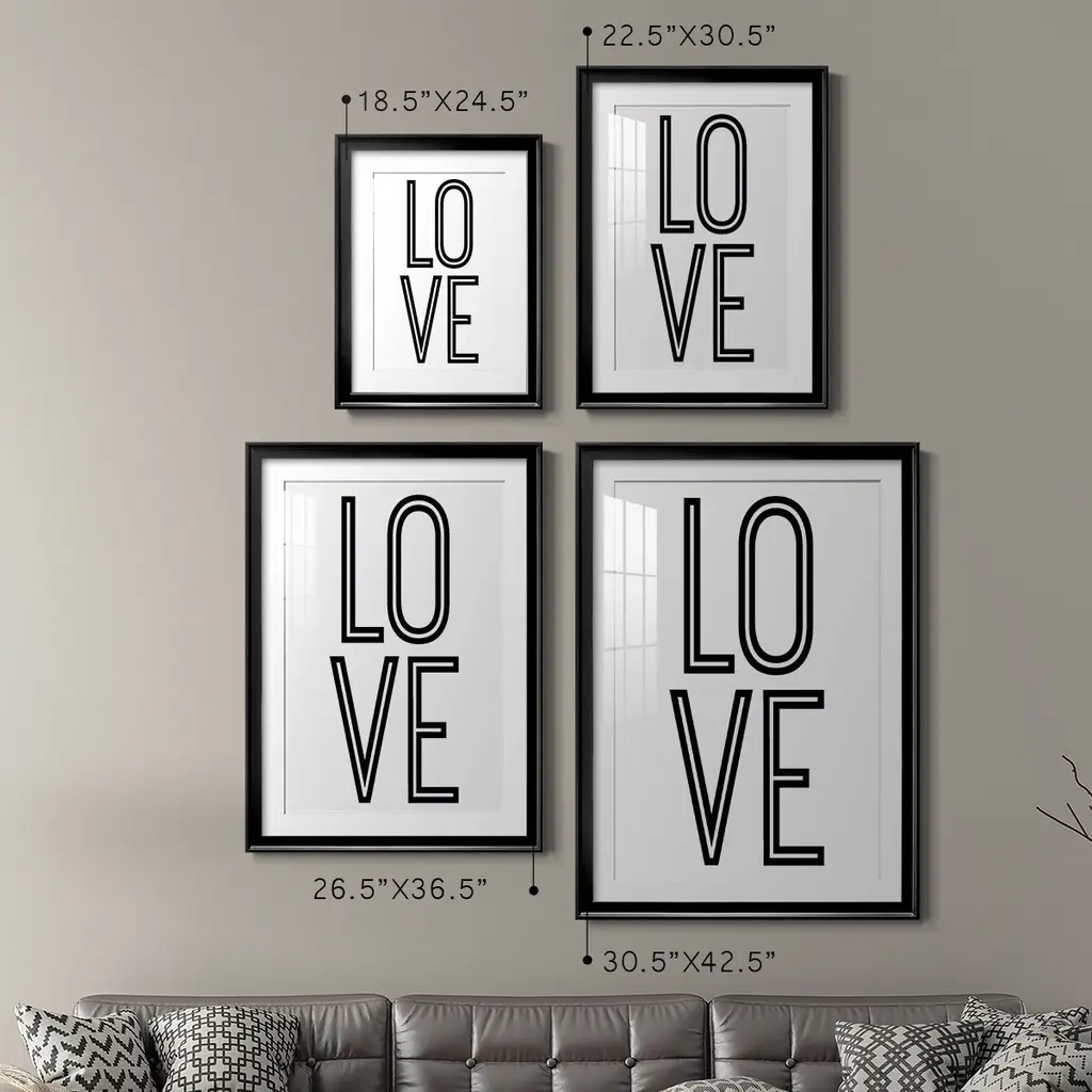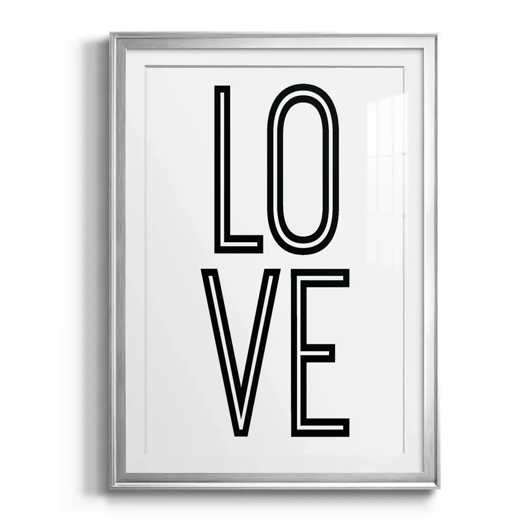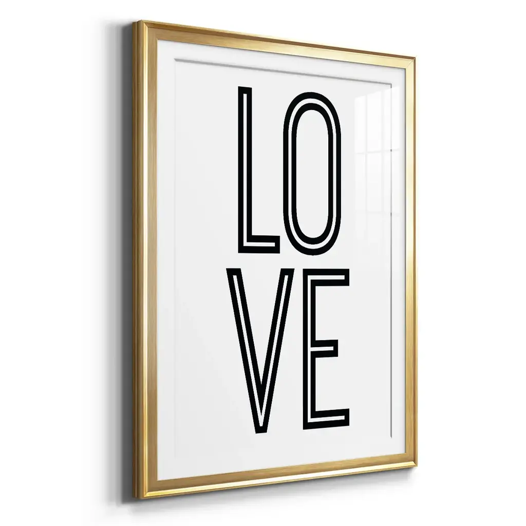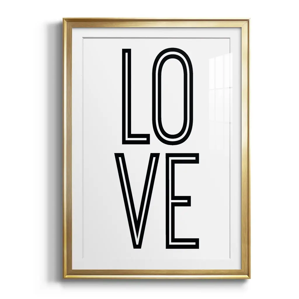 Bold Love II Premium Framed Print - Ready to Hang A Premium Framed Print created to last. Framed in distressed wood and available in an array of sizes and colors Featuring a beveled a solid wood stretcher bar, each piece comes ready to hand 4 SIZES AVAILABLE 30.5''X42.5'' - Overall Size 26.5'X36.5'' - Overall Size 22.5''x30.5'' - Overall Size 18.5''x24.5'' - Overall Size Each piece is made to order. Each piece comes with hanging hardware. Made in the USA Ready to Hang Giclee Paper Print Acrylic Glass Beveled Matt Board