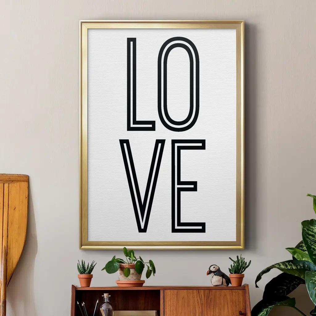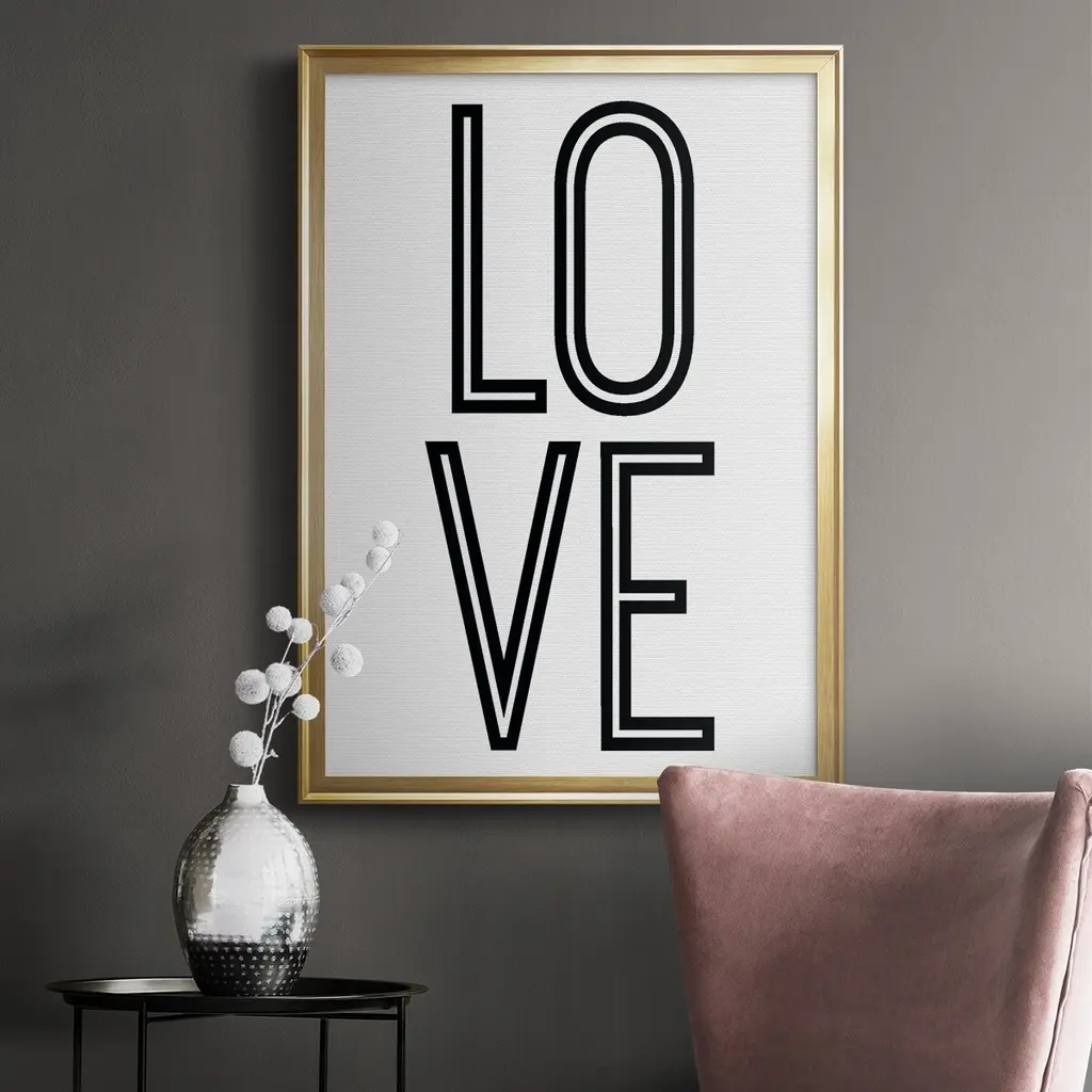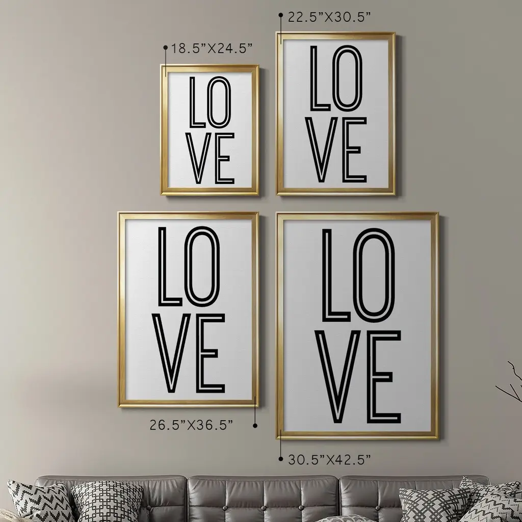 Bold Love II Premium Framed Print - Ready to Hang A Premium Framed Print created to last. Framed in distressed wood and available in an array of sizes and colors Featuring a beveled a solid wood stretcher bar, each piece comes ready to hand 4 SIZES AVAILABLE 30.5''X42.5'' - Overall Size 26.5'X36.5'' - Overall Size 22.5''x30.5'' - Overall Size 18.5''x24.5'' - Overall Size Each piece is made to order. Each piece comes with hanging hardware. Made in the USA Ready to Hang