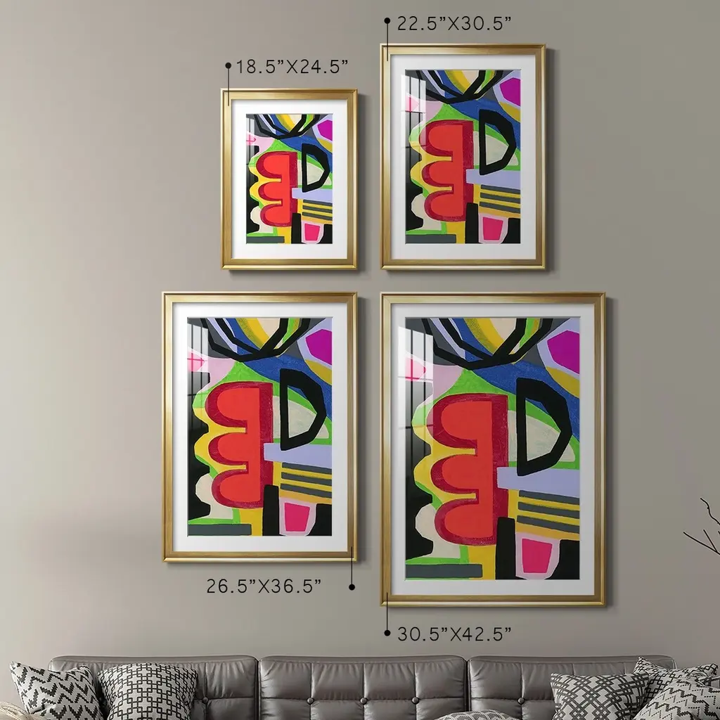 Bold Shape Shift I Premium Framed Print - Ready to Hang A Premium Framed Print created to last. Framed in distressed wood and available in an array of sizes and colors Featuring a beveled a solid wood stretcher bar, each piece comes ready to hand 4 SIZES AVAILABLE 30.5''X42.5'' - Overall Size 26.5'X36.5'' - Overall Size 22.5''x30.5'' - Overall Size 18.5''x24.5'' - Overall Size Each piece is made to order. Each piece comes with hanging hardware. Made in the USA Ready to Hang Giclee Paper Print Acrylic Glass Beveled Matt Board