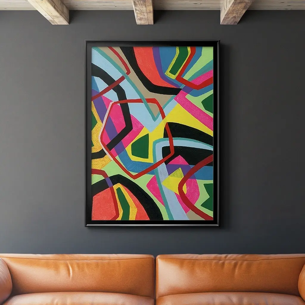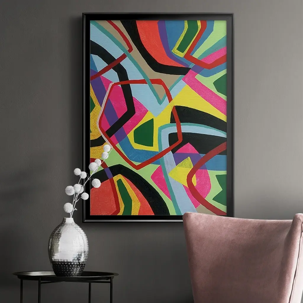 Bold Shape Shift II Premium Framed Print - Ready to Hang A Premium Framed Print created to last. Framed in distressed wood and available in an array of sizes and colors Featuring a beveled a solid wood stretcher bar, each piece comes ready to hand 4 SIZES AVAILABLE 30.5''X42.5'' - Overall Size 26.5'X36.5'' - Overall Size 22.5''x30.5'' - Overall Size 18.5''x24.5'' - Overall Size Each piece is made to order. Each piece comes with hanging hardware. Made in the USA Ready to Hang