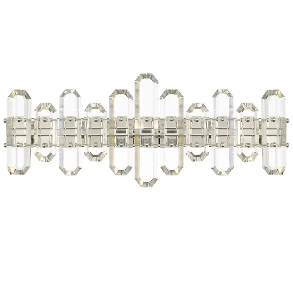 The glamourous Bolton Vanity Light by Crystorama will elevate your bathroom to another luxurious level. This eye-catching piece is comprised of a row of large faceted crystal panels of varying sizes secured to a linear steel frame, creating a spellbinding display of gleaming luminosity. Each crystal prism reflects and refracts a warm glowing light from 3 incandescent bulbs, creating a calming and romantic ambiance ideal for any sized bathroom or vanity.