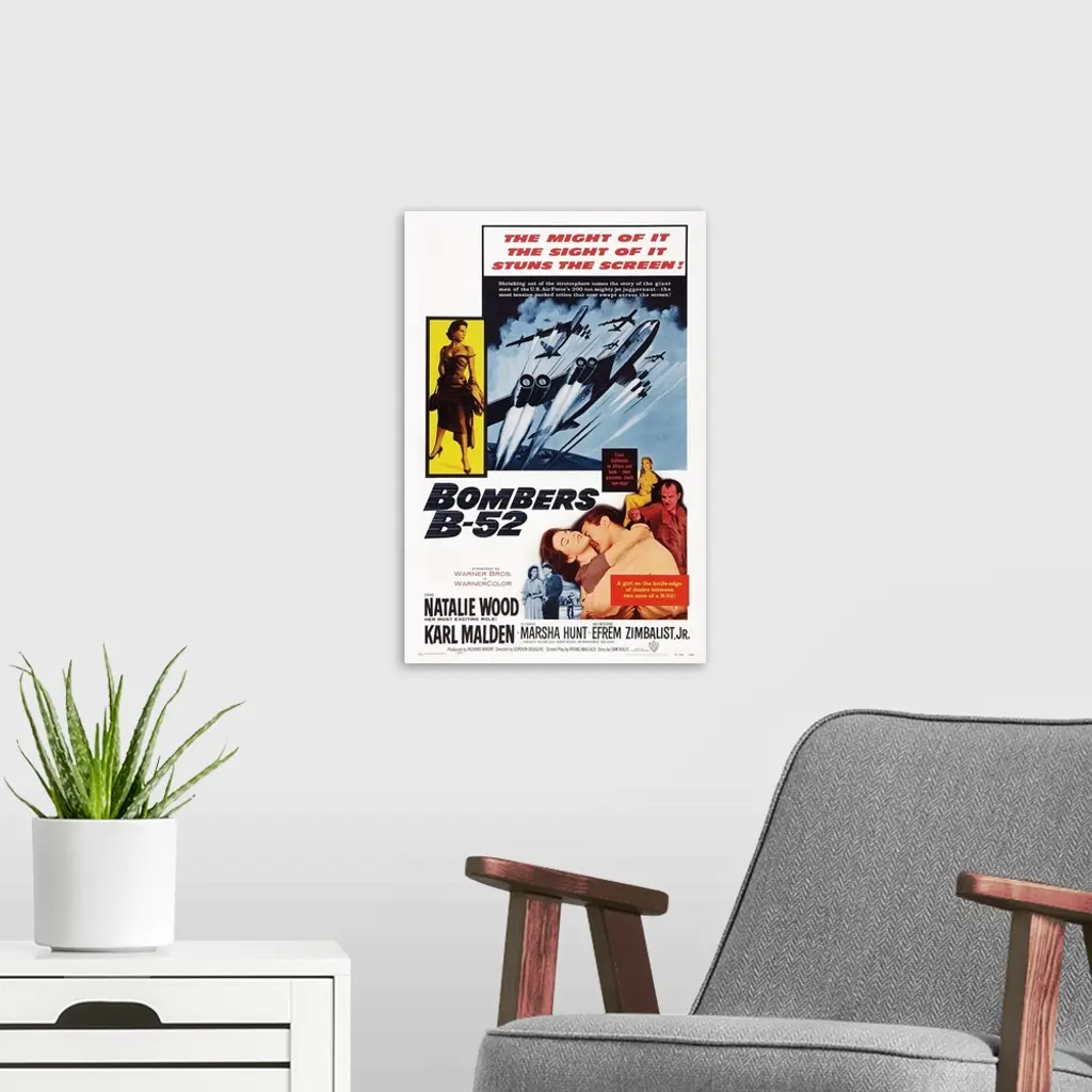Bombers B-52, US Poster Art, Top Left: Natalie Wood; Bottom Left: Marsha Hunt; Center: Natalie Wood, Efrem Zimbalist Jr.; Right: Karl Malden, 1957.