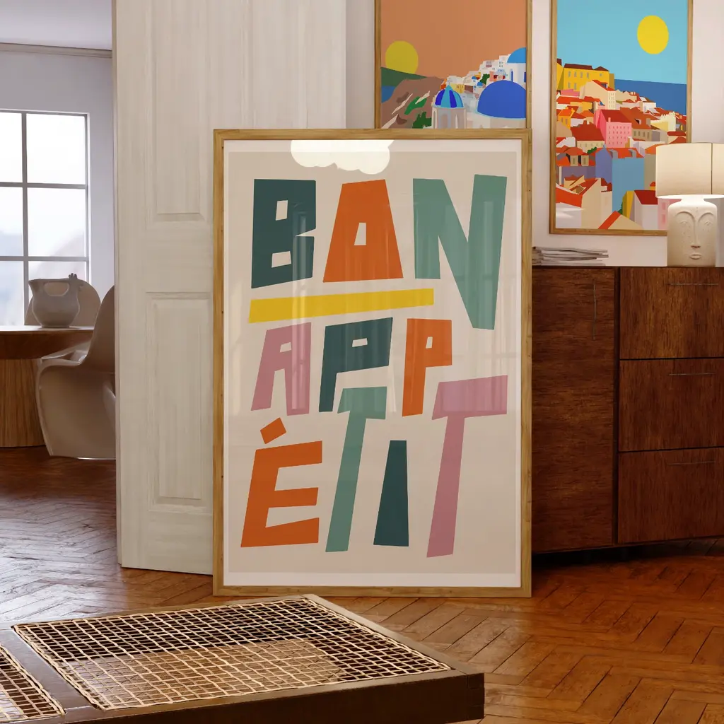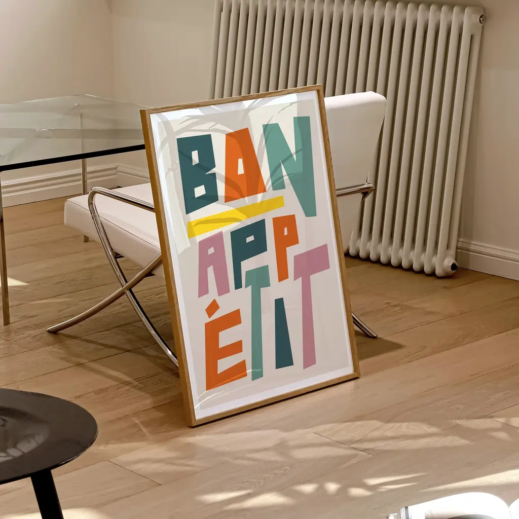 Bon Appetit Typography Art Print - A2Elevate your decor with this 'bon appetit' print. The typography and clean lines create a contemporary aesthetic that seamlessly blends with a variety of interior styles. Hang it in your kitchen or dining area to inspire a love for good food and create a welcoming atmosphere. All prints are digitally designed by myself and printed to order.Smooth fine art 230 gsm matte card. Printed with vivid colour and detail. Sold without a frame.