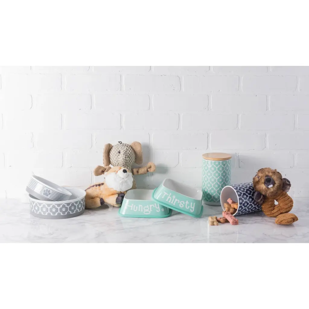 Bone Dry Paw Lattice Print Ceramic Treat Canister - Stone