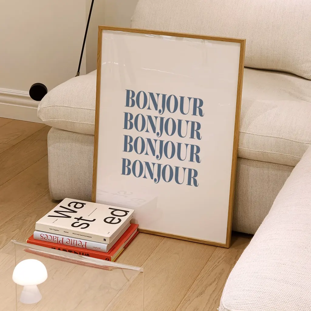 Bonjour and Merci Art print set in A3. A double dose of French slogans, our A3 art print set includes X2 prints.X1 A3 giclée printed Bonjour print in NavyX1 A3 giclée printed Merci print RedA perfect addition to any space, add a nostalgic playful element to your walls. Sold without frameGiclée printed on Munken pure smooth cream paper which is certified by the Rainforest Alliance Program for FSC® Standards.