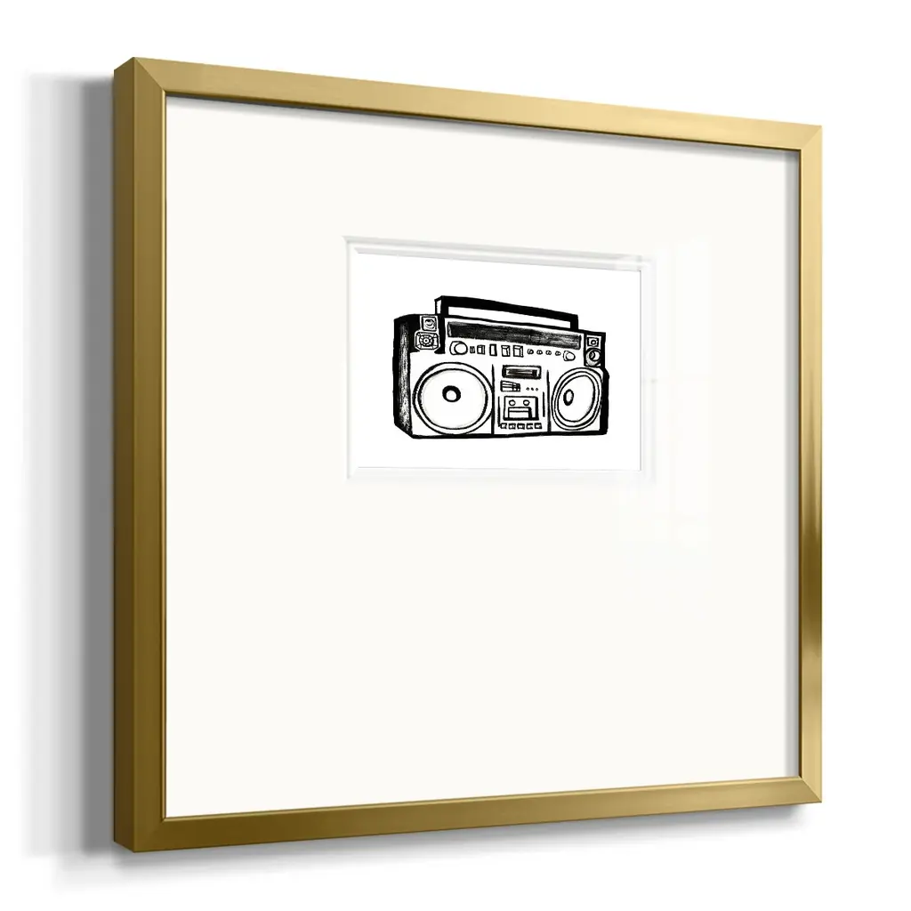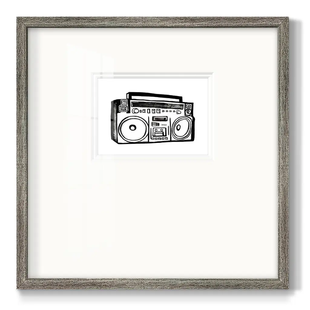 Boombox SketchPremium Framed Print A framed cold pressed paper print featuring superior double matting and quality frame. 2 SIZES AVAILABLE 16''X16''' - Overall Size 20''X20''' - Overall Size Each piece is made to order. Each piece comes with hanging hardware. Made in the USA Ready to Hang Giclee Paper Print Plexiglass Beveled Matt Board Double Matte Board