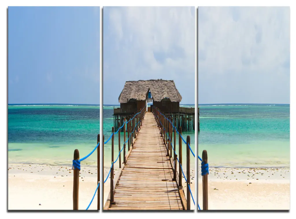 "Bora Bora Panorama Beach" Metal Wall Art, 3 Panels, 36"x28"