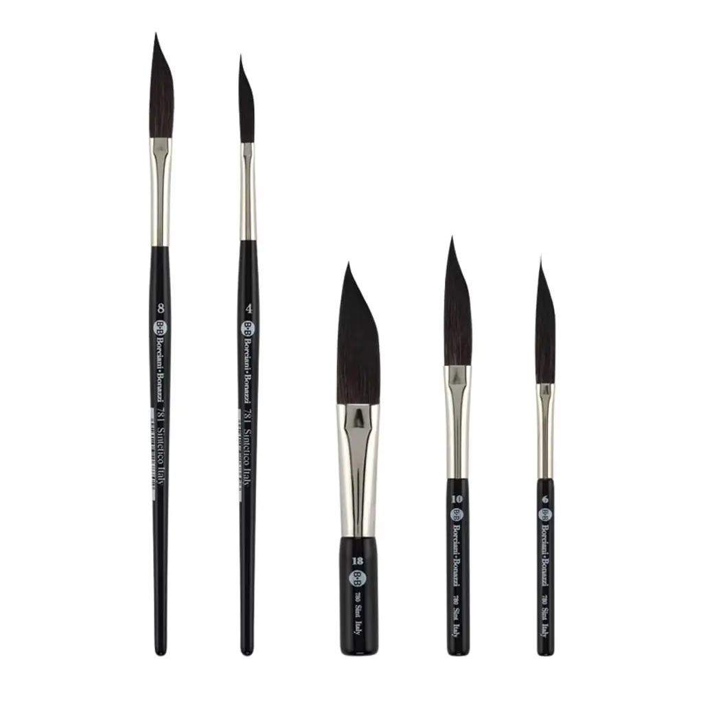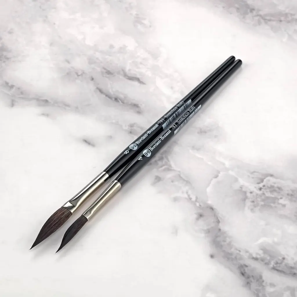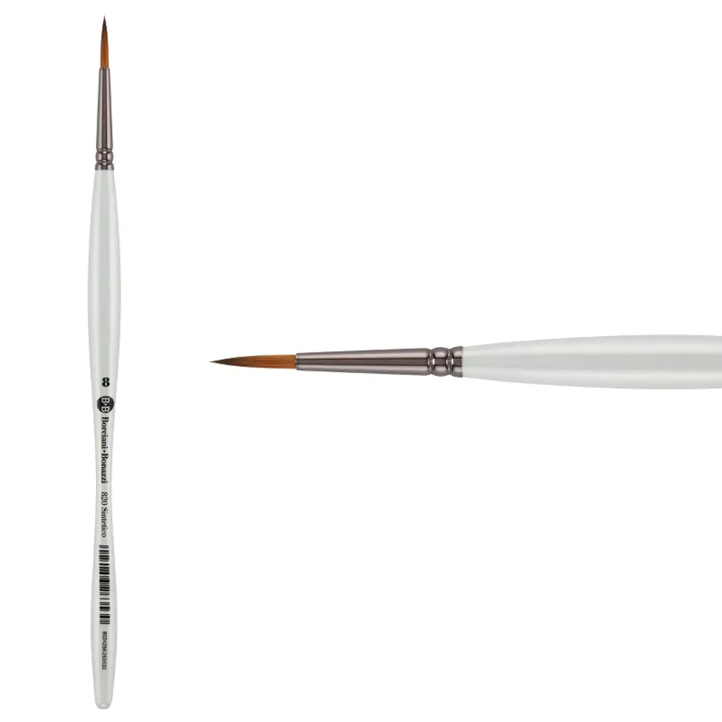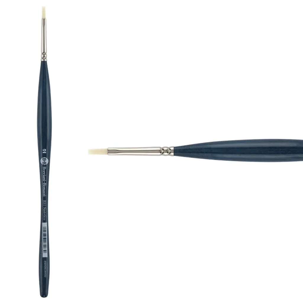 Discover the exquisite Borciani Bonazzi HIDRO Synthetic Sword Striper - Short Handle line of brushes, a quintessential choice for discerning artists seeking precision and elegance in their work. This set, meticulously handcrafted in Italy by skilled artisans, embodies the pinnacle of artistic tools, seamlessly blending tradition with innovation for an unparalleled painting experience. Designed with the discerning artist in mind, this line comprises three versatile brushes in sizes 6, 10, and 18, each featuring a short handle for enhanced control and maneuverability. These brushes are perfect for achieving both fine lines and broad strokes, making them indispensable for calligraphy, pinstriping, and hand-lettering projects. The unique micro-perforated synthetic bristles of these liner brushes are crafted to release color slowly, ensuring precision in every stroke while maintaining the integrity of your medium. The Sword Striper brushes are particularly suited for artists working with watercolors and enamels. Their animal-friendly, cruelty-free construction ensures peace of mind without compromising on performance. The synthetic bristles, resembling the texture and responsiveness of natural hair, provide a versatile tool for artists who require the adaptability of a liner paint brush for various media. These liner brushes are not only functional but also a testament to the artistry of their creators. Each brush is a masterpiece in itself, carefully assembled to meet the rigorous demands of professional artists. Whether you're creating intricate calligraphy or engaging in the delicate art of pinstriping, these brushes provide the precision necessary for every artistic endeavor. Elevate your artistry with the Borciani Bonazzi HIDRO Synthetic Sword Stripers. Experience the blend of tradition and modernity, precision, and elegance in every stroke, made possible by the dedication of artisans committed to crafting the finest tools for your creative journey.