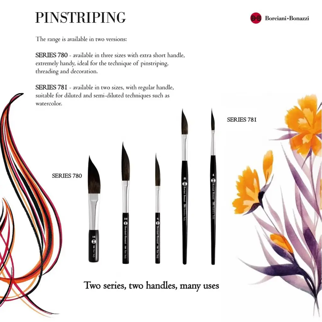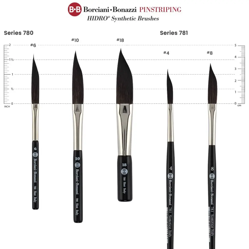 Borciani Bonazzi Hidro Synthetic Sword Striper Liner Brushes For Fine Lines & Lettering - Sizes 6 - Extra Short Handle, Handcrafted In Italy,