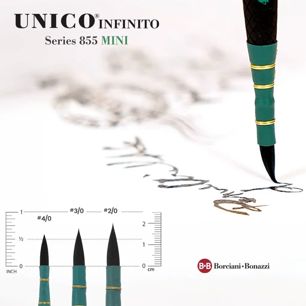 Borciani Bonazzi Infinito Synthetic Mini Quill Watercolor Brush Series 855 - Size # 4X0, Patented Responsive Hidro® Hair - Watercolor Art Brushes -