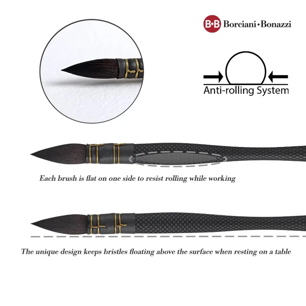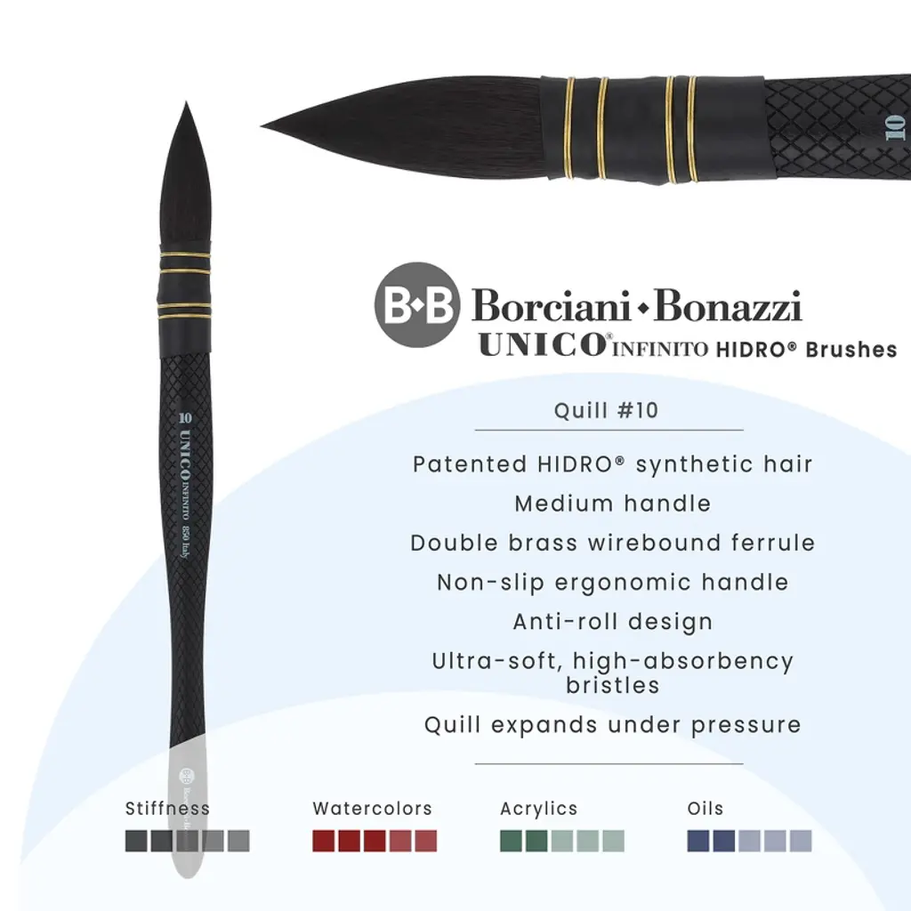 Borciani Bonazzi Infinito Synthetic Quill Watercolor Brush - Size # 10 W/ Patented Responsive Hidro® Hair - Watercolor Brushes For Artists - Textured