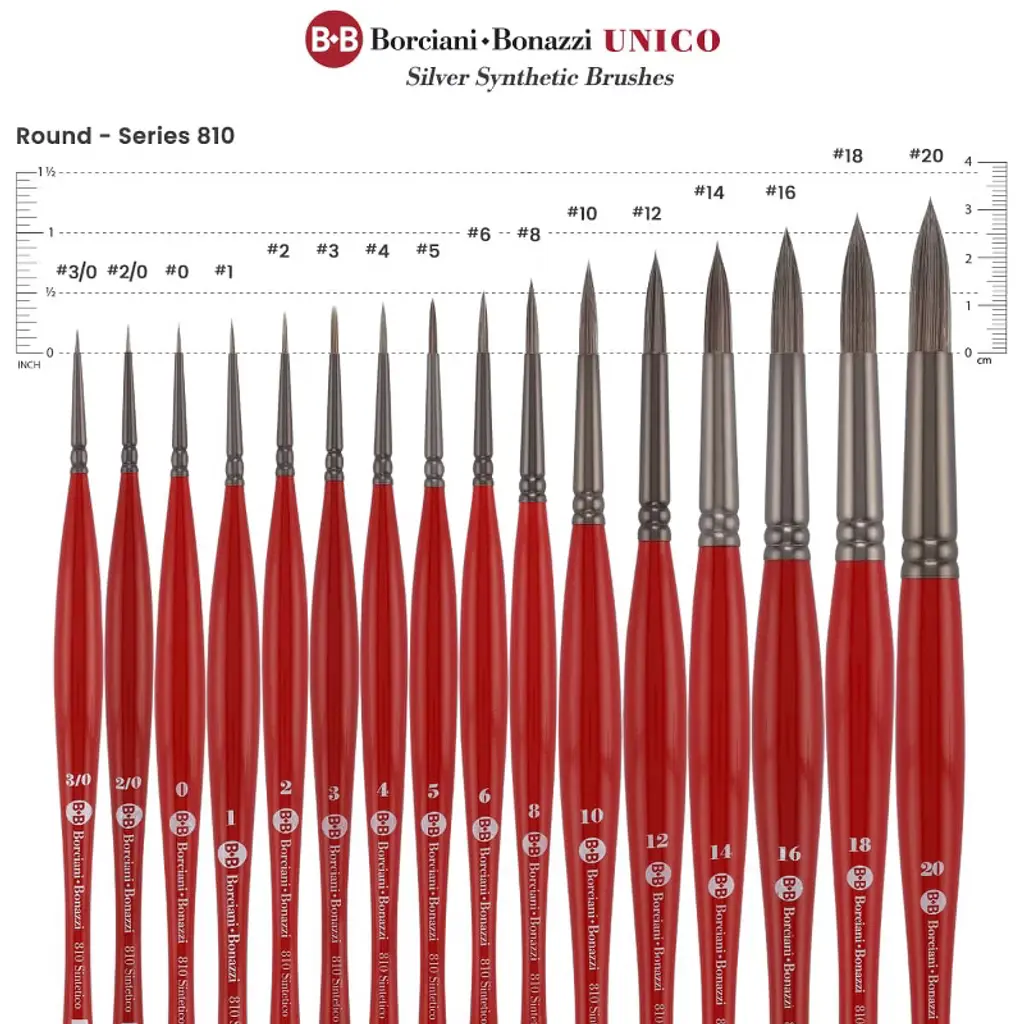 Borciani Bonazzi Unico Silver Synthetic Series 810 Paint Brush, Round 8 - Medium Handle Paintbrush Handcrafted In Italy, Cruelty-free, Acrylic, Oil,