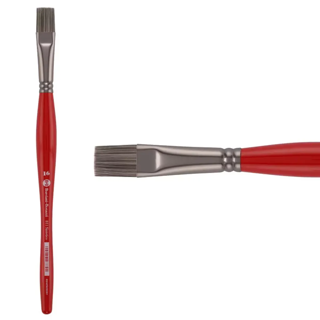 Borciani Bonazzi Unico Silver Synthetic Series 811 Paint Brush, Flat 18 - Medium Handle Paintbrush Handcrafted In Italy, Cruelty-free, Acrylic, Oil,