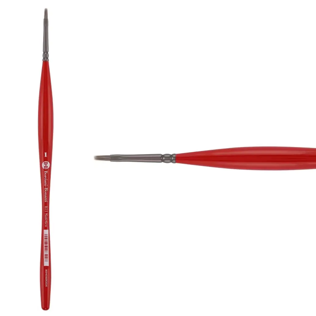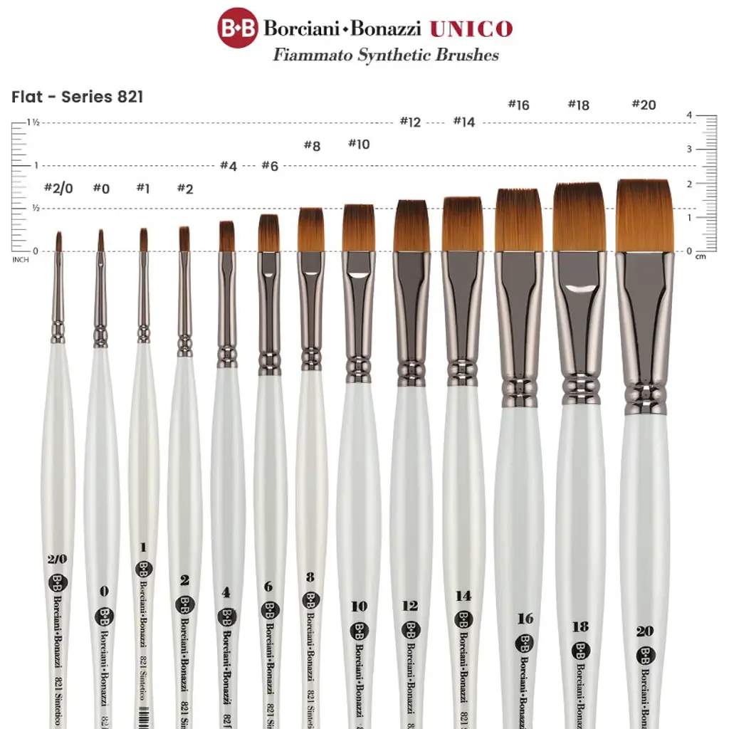 Borciani E Bonazzi Unico Fiamatto Synthetic Series 821 Paint Brush, Flat Size 0 - For Acrylic And Watercolor Painting - Ergonomic Handle,
