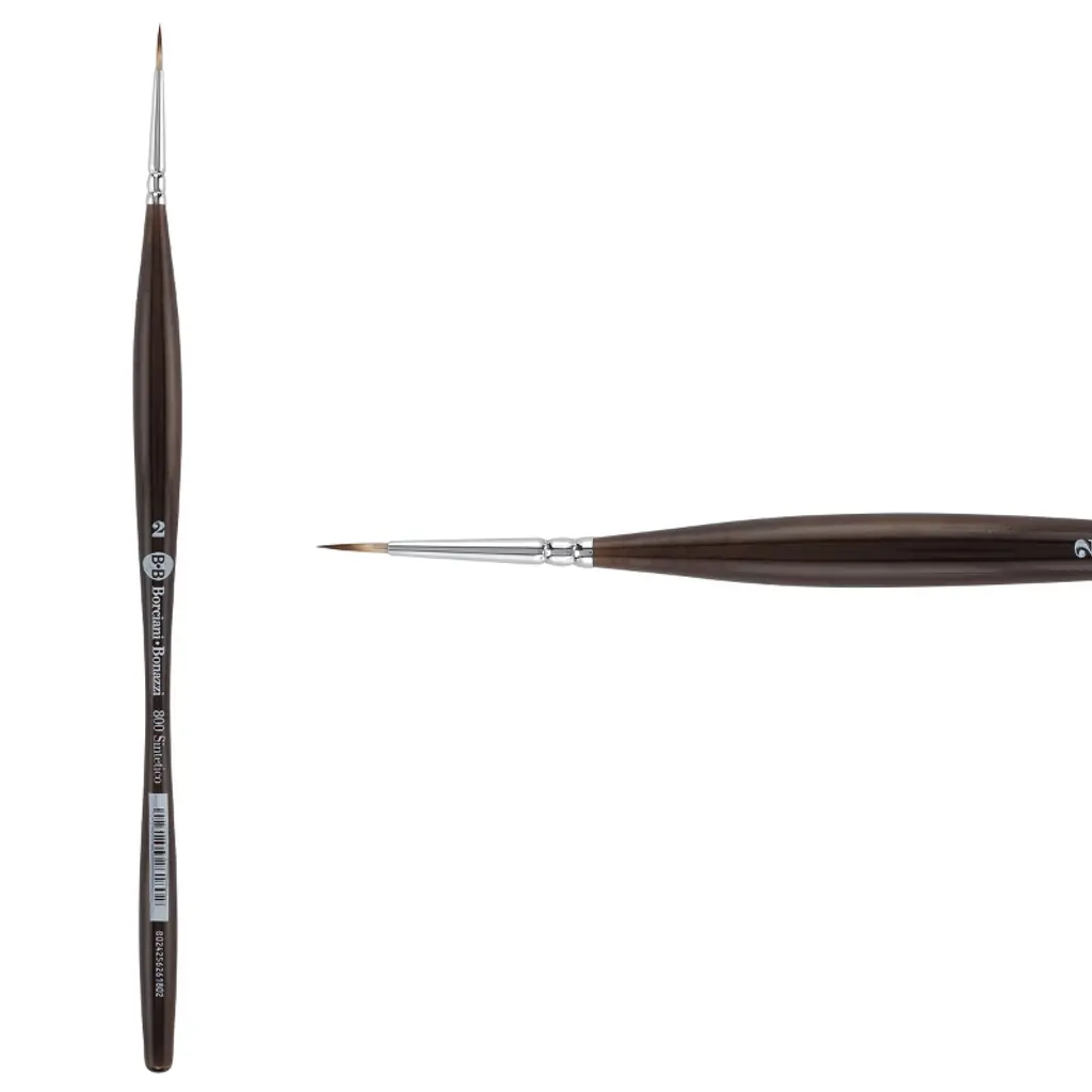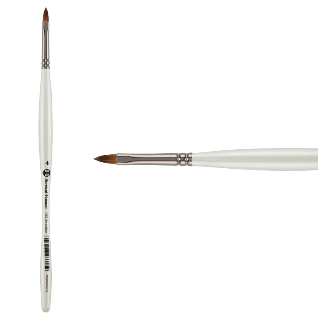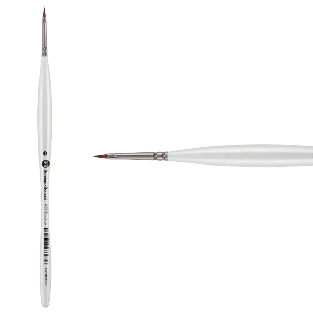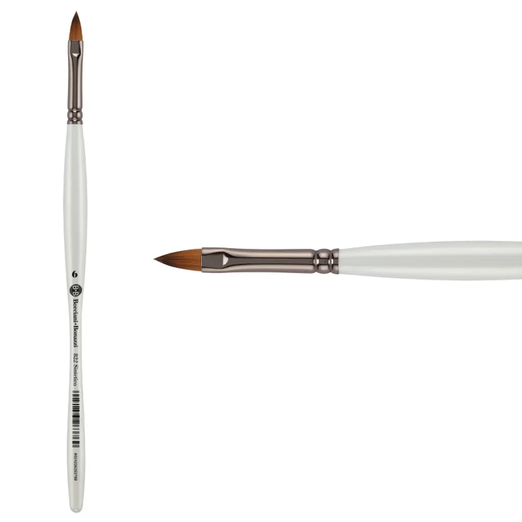 Introducing the Borciani e Bonazzi UNICO® Fiammato Synthetic Paint Brush, a masterpiece that embodies the elegance and precision required by artists across the globe. Handcrafted in Italy by skilled artisans, this paint brush is designed with ultra-soft synthetic bristles that effortlessly adapt to your painting technique, whether you're creating soft gradients, crisp details, or expressive strokes. With its ability to glide over surfaces and create precise lines without unwanted marks, the UNICO® Fiammato is a top choice for watercolorists, illustrators, and hyper-realists. Its absorbent bristles hold and slowly release water and color, making it ideal for watercolor and acrylic painting. Perfect for those who value animal-friendly alternatives, this brush's synthetic bristles offer the same level of performance as traditional natural hair brushes. The Borciani e Bonazzi UNICO® Fiammato features a medium white lacquered handle that is both balanced and ergonomic, reducing hand strain during extended painting sessions. The handle is of medium length, providing the perfect balance for detailed work or for those who prefer to grasp towards the end when working at an easel. Its anti-roll design ensures your brush stays in place when not in use, allowing you to focus solely on your art. The gun-metal brass ferrule adds a touch of sophistication while ensuring the durability of the brush. Whether you're working with watercolor, acrylics, or model paints, this brush is an essential tool in your artistic arsenal. Discover the joy of painting with Borciani e Bonazzi's UNICO® Fiammato Synthetic Paint Brush. Its great elasticity and ability to hold and release water smoothly makes it perfect for creating flawless color applications, whether you're working with watercolors or acrylics. Elevate your art with a brush that is as expressive and detailed as your vision, and experience the artistry of handcrafted excellence with Borciani e Bonazzi.