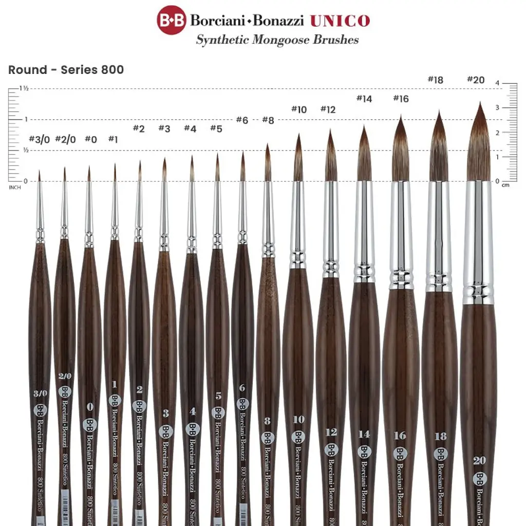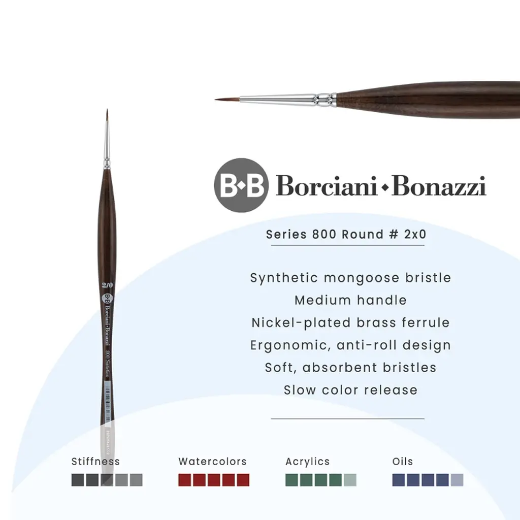 Borciani E Bonazzi Unico Synthetic Mongoose Artist Paint Brush - Series 800 Round - Size #2x0 - Watercolors, Oil & Acrylic Paint - Handcrafted In