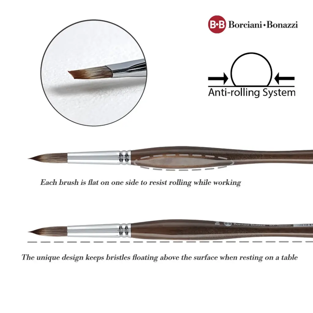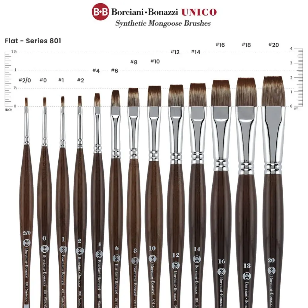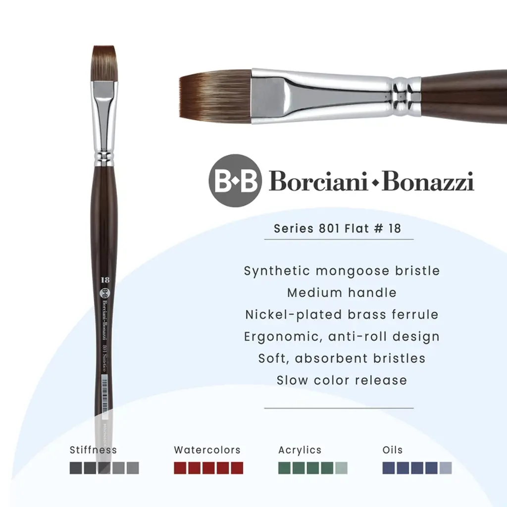 Borciani E Bonazzi Unico Synthetic Mongoose Artist Paint Brush - Series 801 Flat - Size #18 - Watercolors, Oil & Acrylic Paint - Handcrafted In Italy,