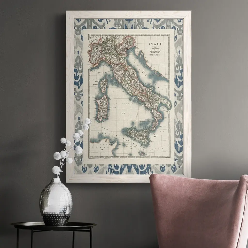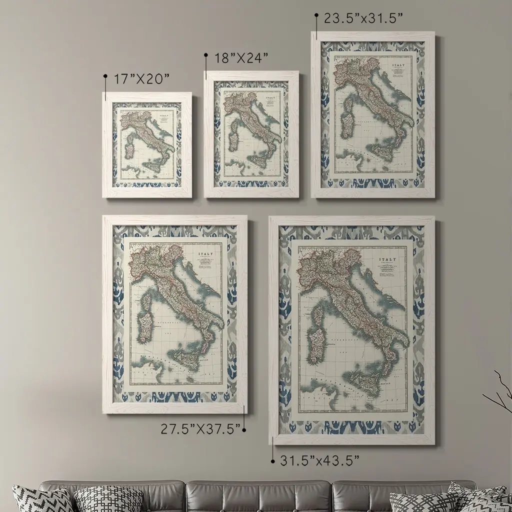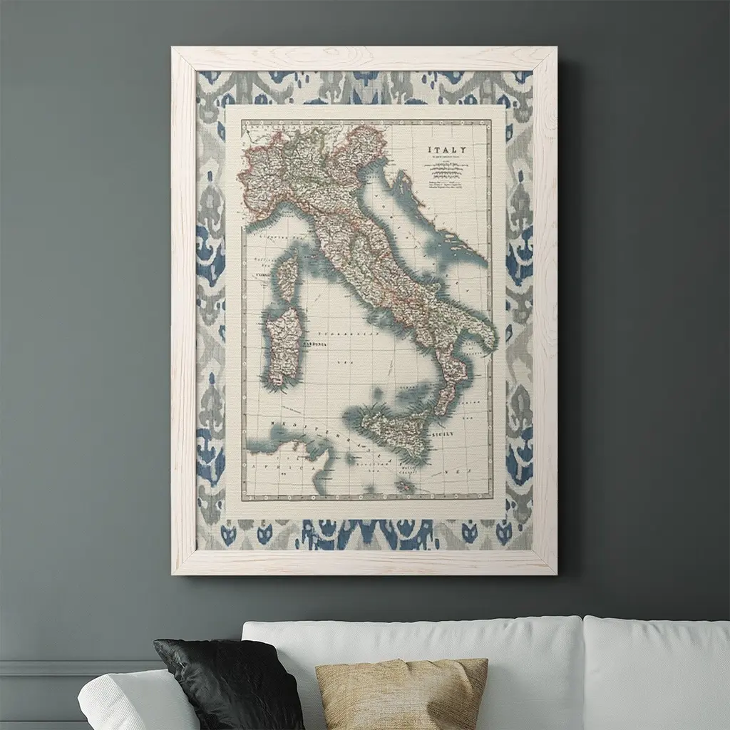 Bordered Map Of Italy-Premium Framed Canvas - Ready To Hang - 27.5x37.5 - Grey