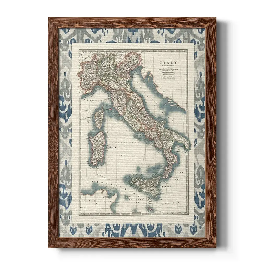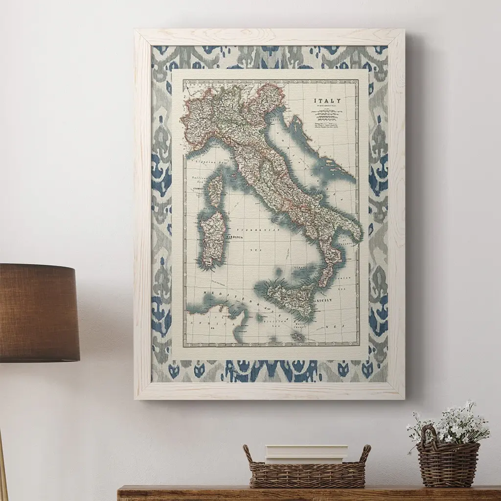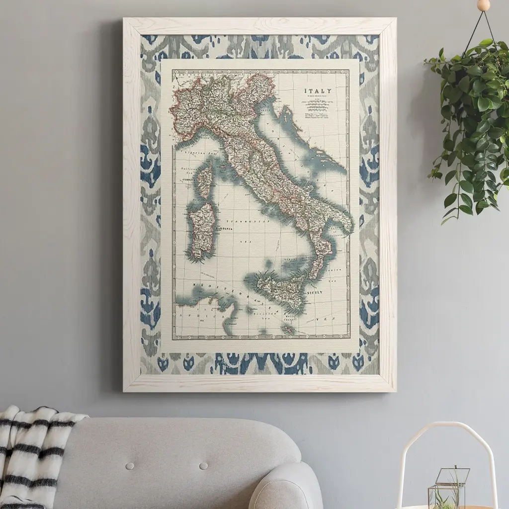 Bordered Map Of Italy-Premium Framed Canvas - Ready To Hang - 27.5x37.5 - Grey