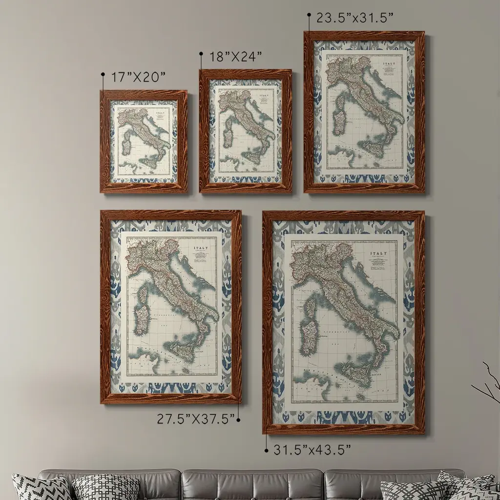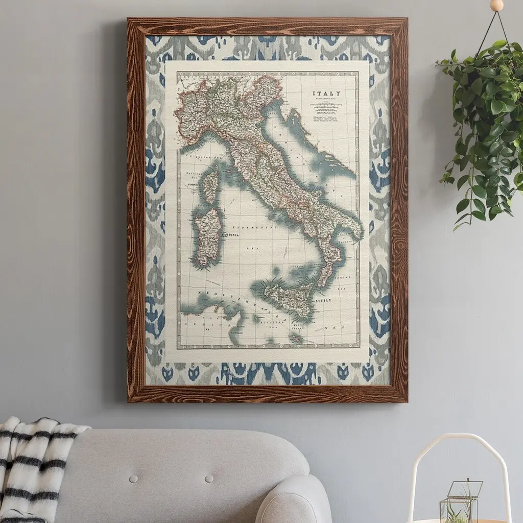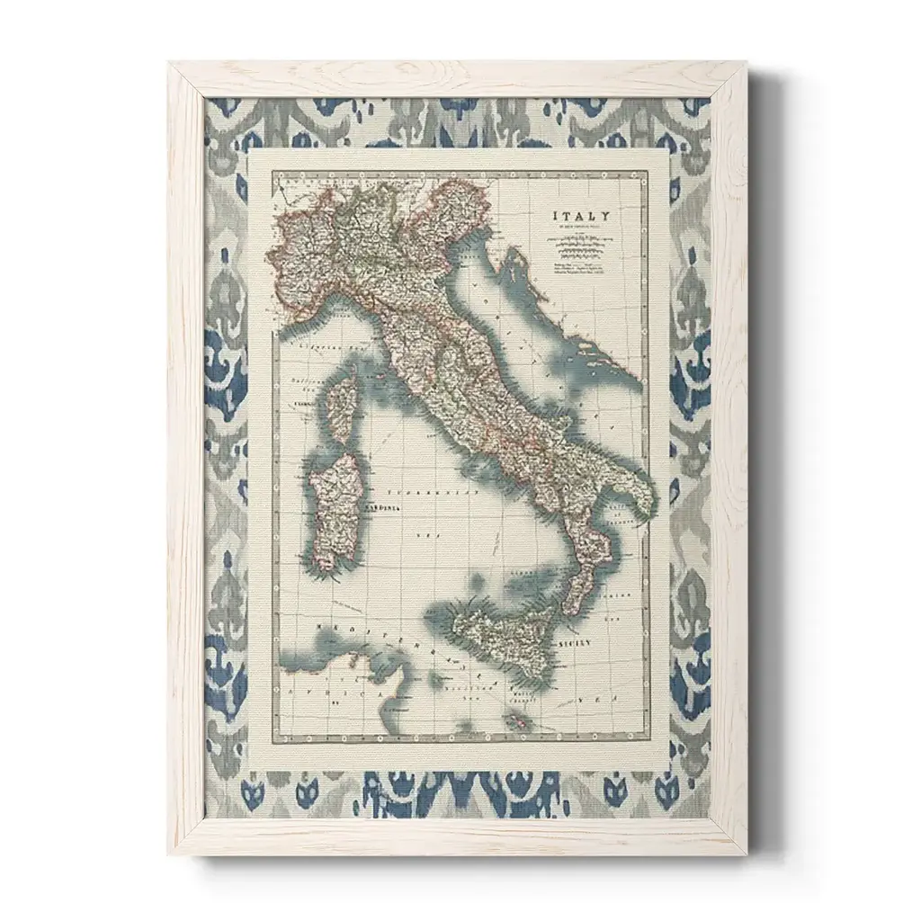 Bordered Map Of Italy-Premium Framed Canvas - Ready To Hang - 27.5x37.5 - White