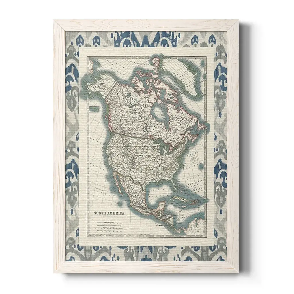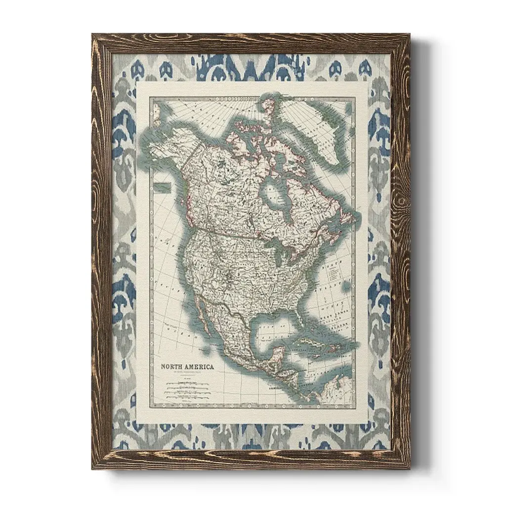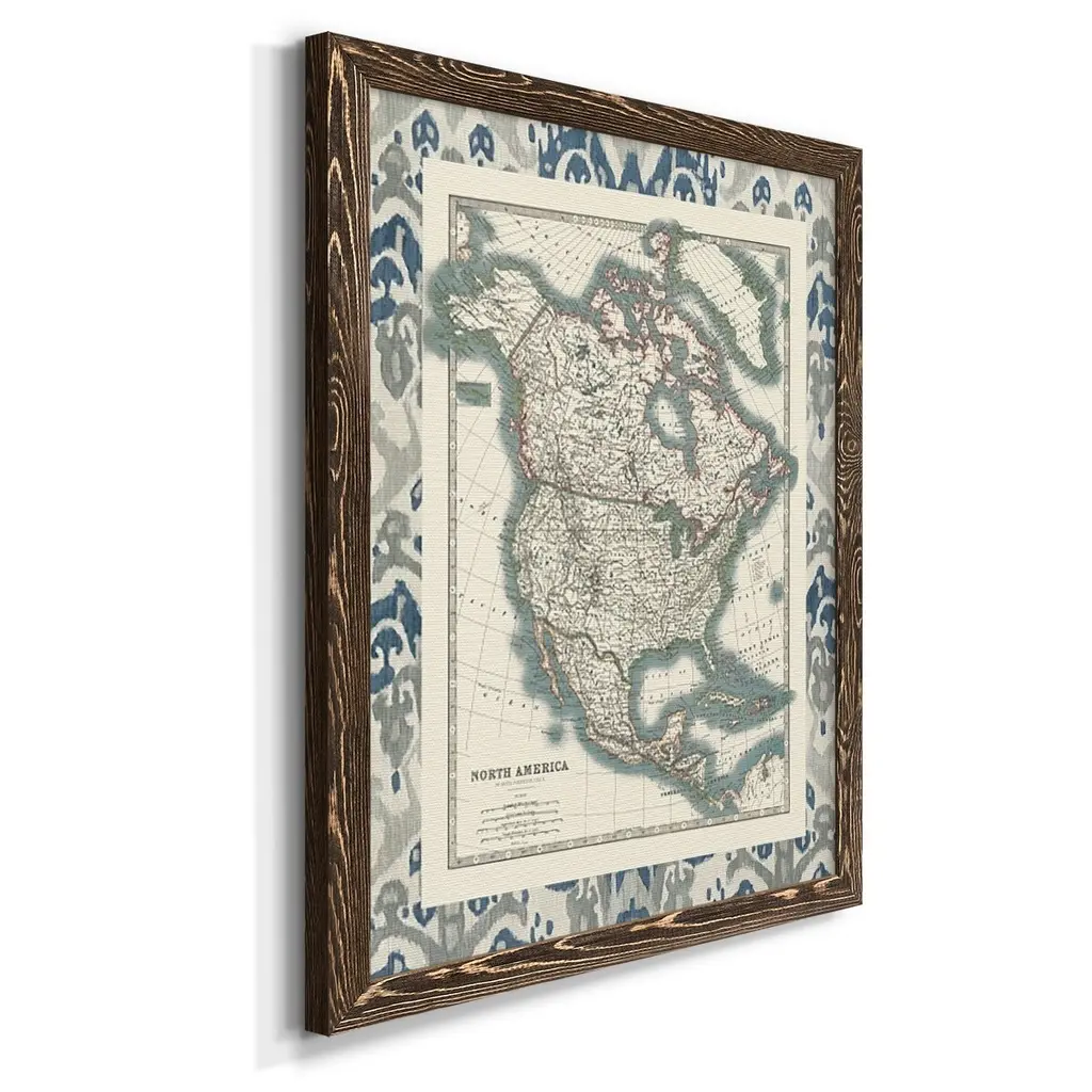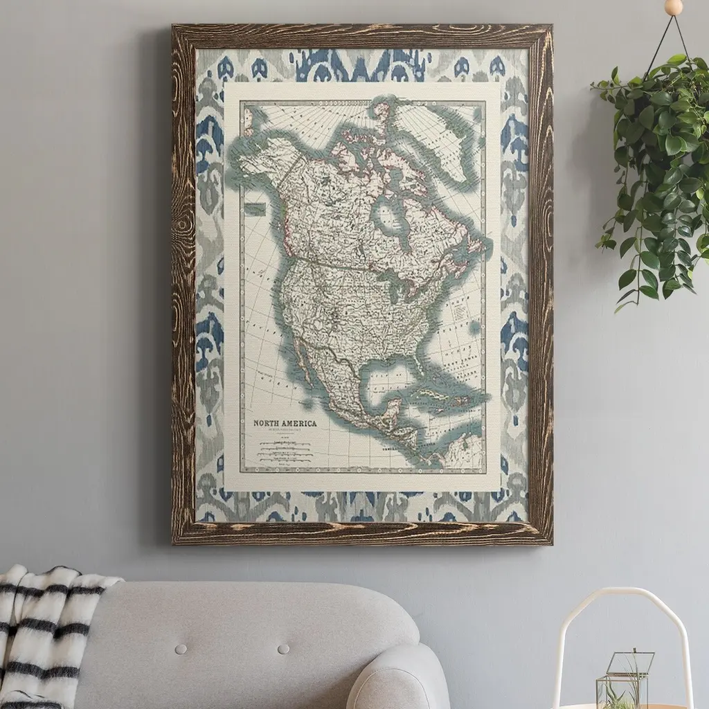 Bordered Map Of North America-Premium Framed Canvas - Ready To Hang - 27.5x37.5 - Black