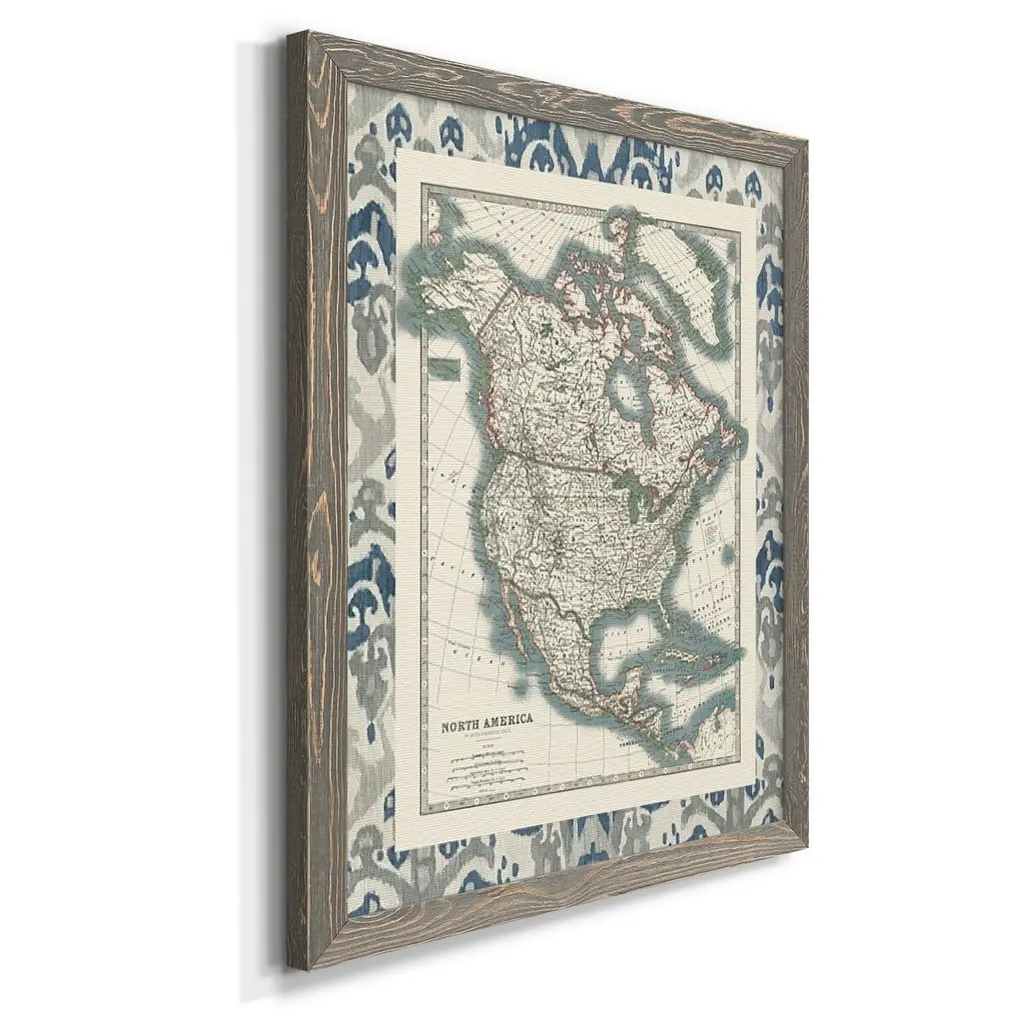 Bordered Map Of North America-Premium Framed Canvas - Ready To Hang - 27.5x37.5 - Grey