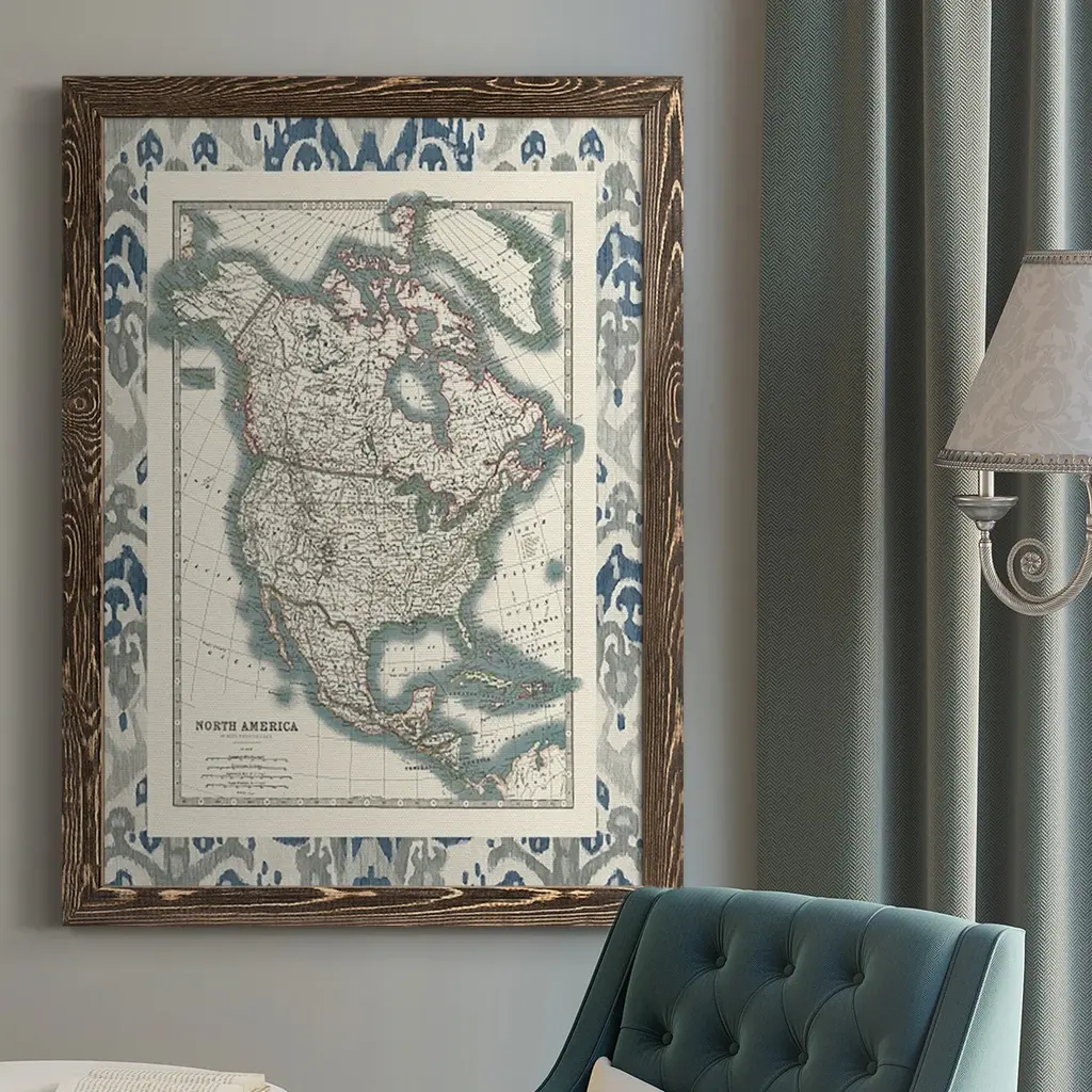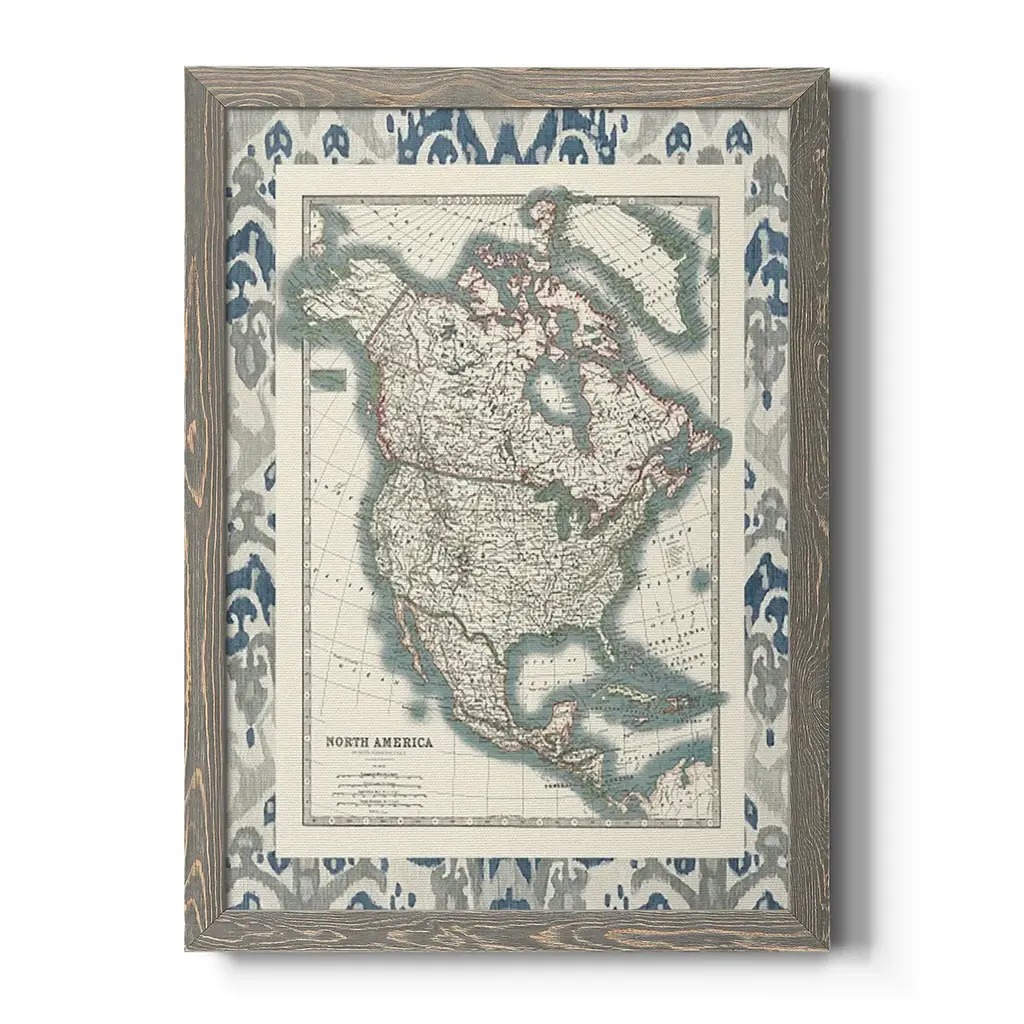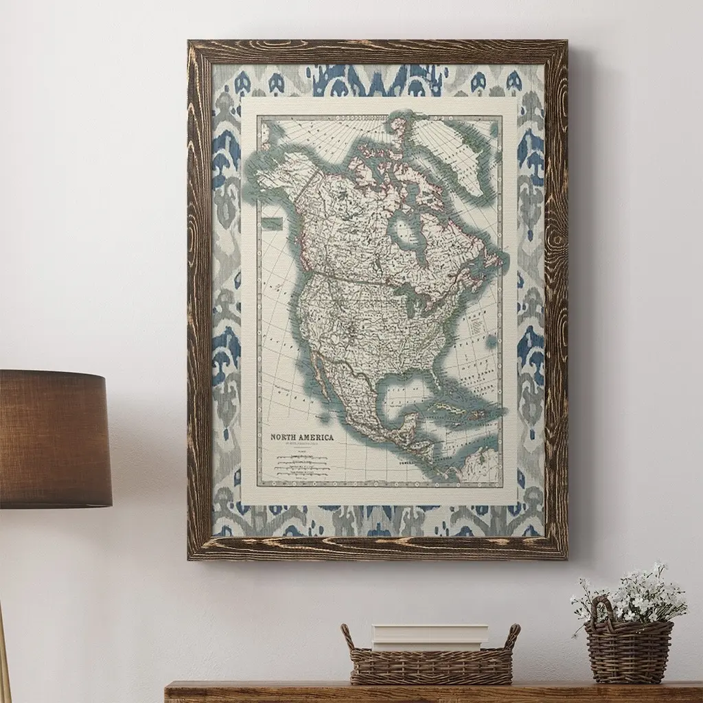 Bordered Map Of North America-Premium Framed Canvas - Ready To Hang - 27.5x37.5 - Walnut