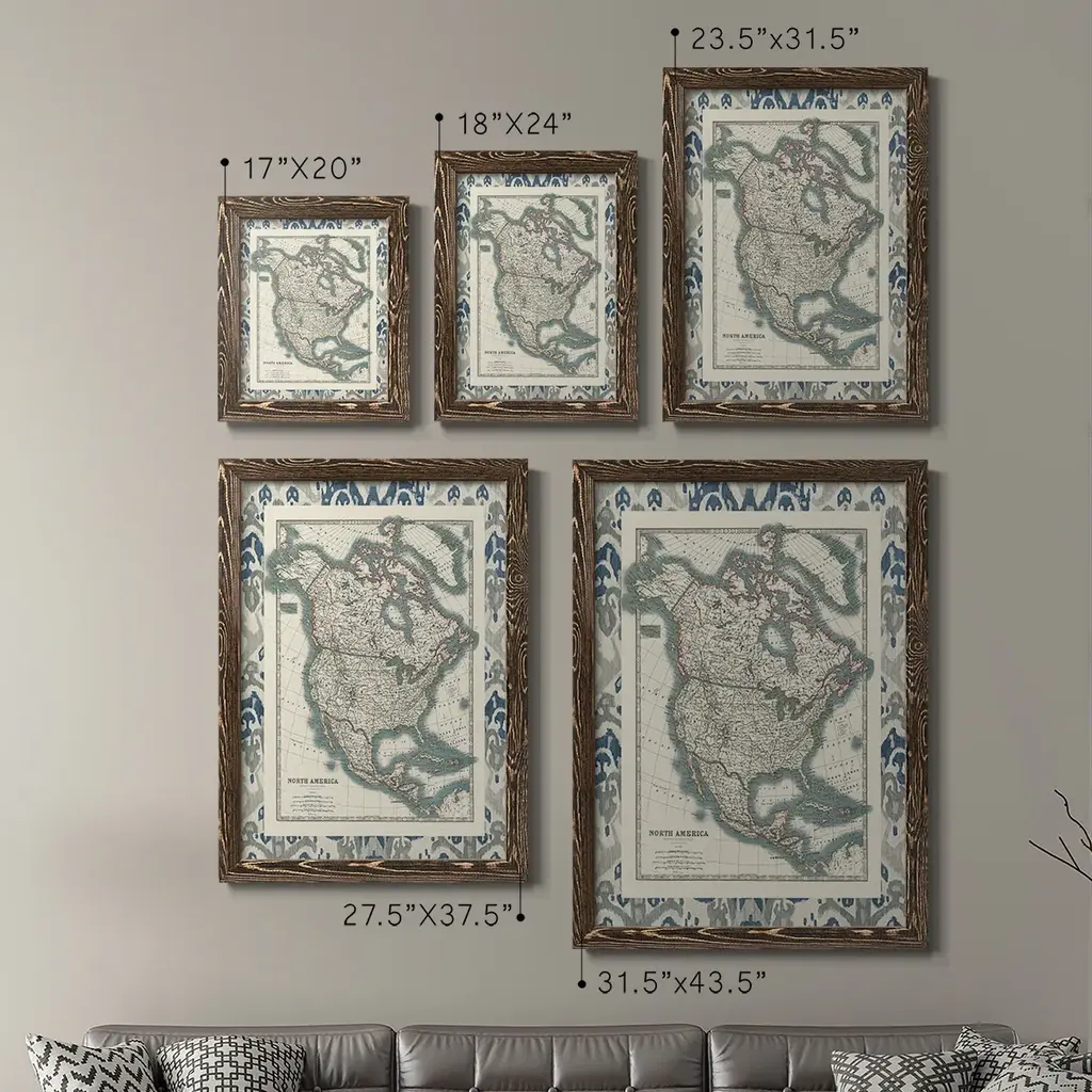 Bordered Map Of North America-Premium Framed Canvas - Ready To Hang - 31.5x43.5 - Grey