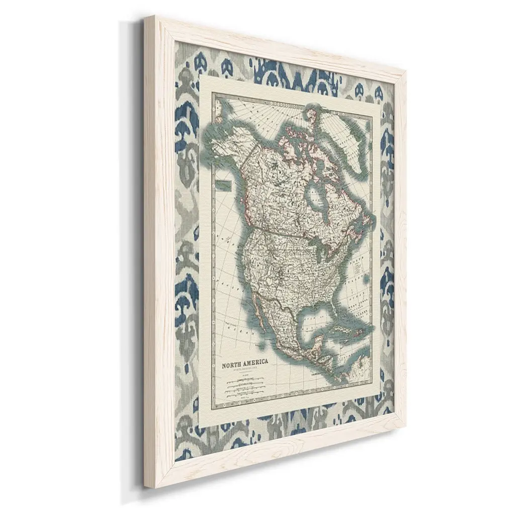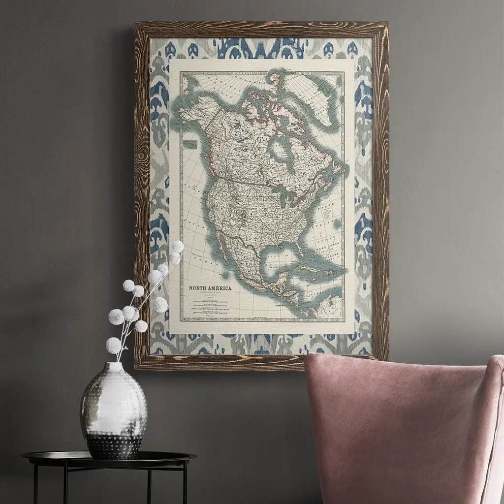 Bordered Map Of North America-Premium Framed Canvas - Ready To Hang - 31.5x43.5 - Walnut