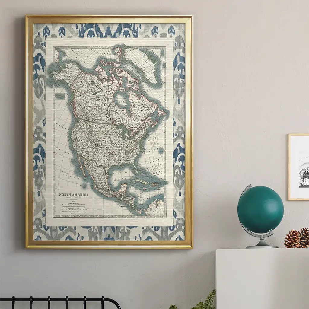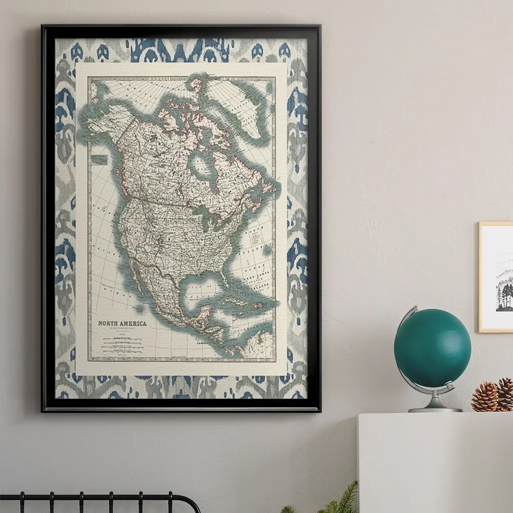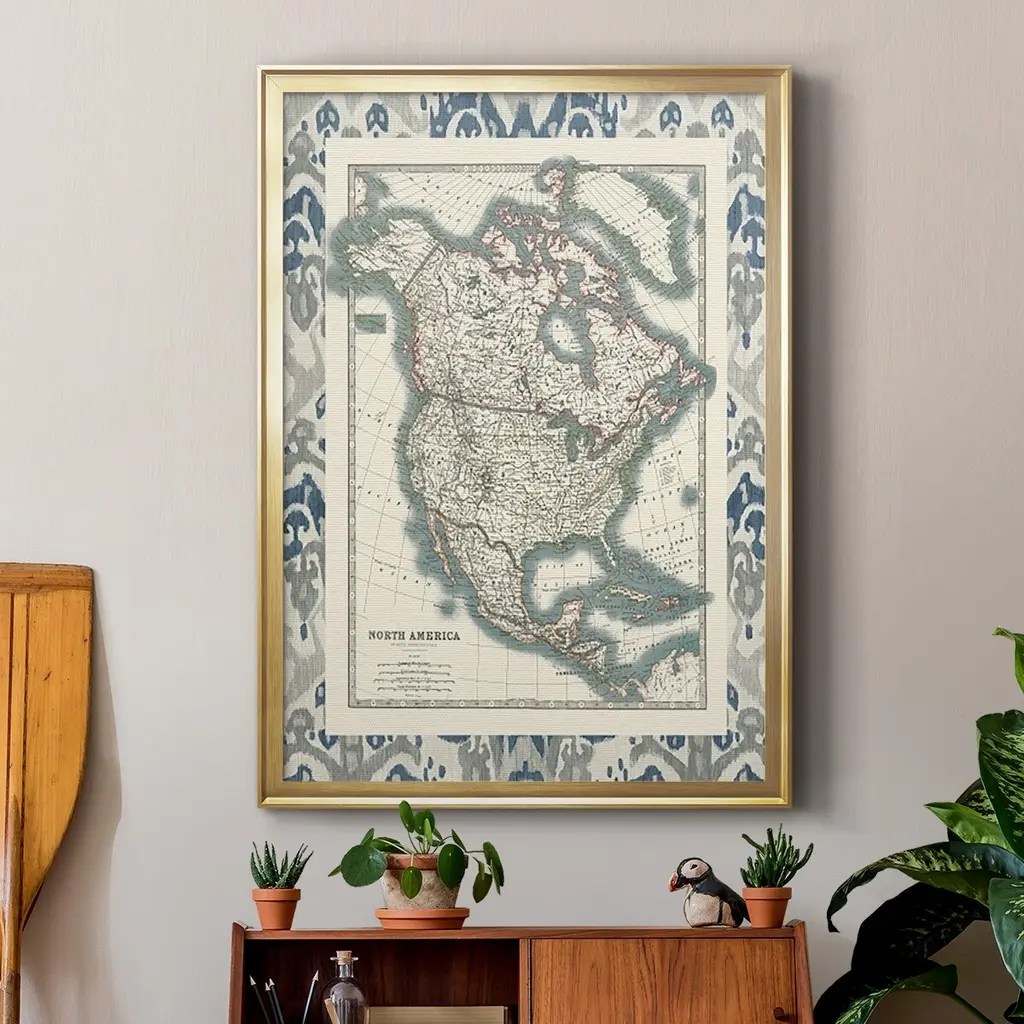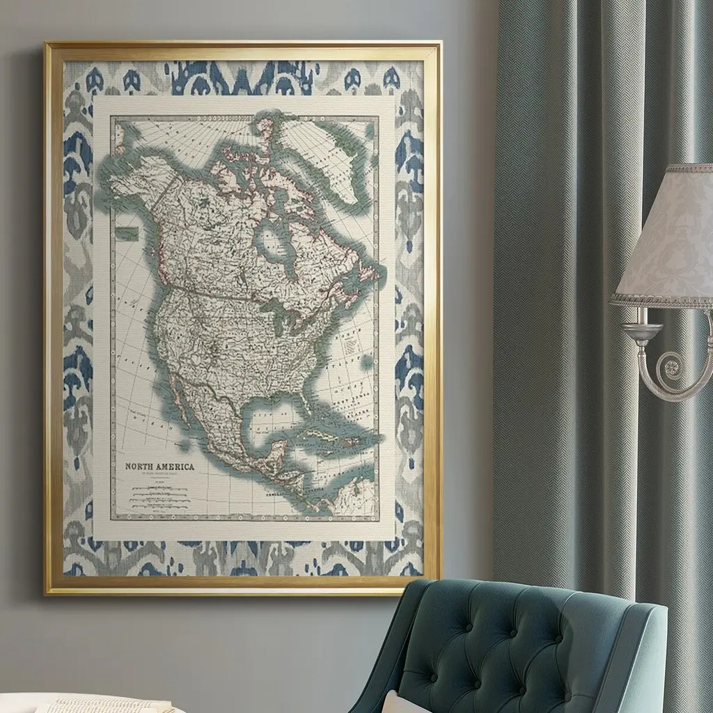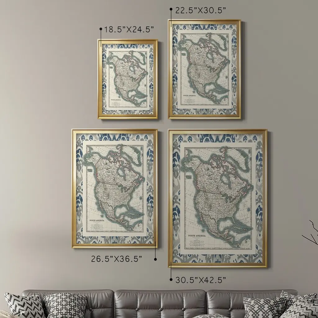 Bordered Map of North America Premium Framed Print - Ready to Hang A Premium Framed Print created to last. Framed in distressed wood and available in an array of sizes and colors Featuring a beveled a solid wood stretcher bar, each piece comes ready to hand 4 SIZES AVAILABLE 30.5''X42.5'' - Overall Size 26.5'X36.5'' - Overall Size 22.5''x30.5'' - Overall Size 18.5''x24.5'' - Overall Size Each piece is made to order. Each piece comes with hanging hardware. Made in the USA Ready to Hang