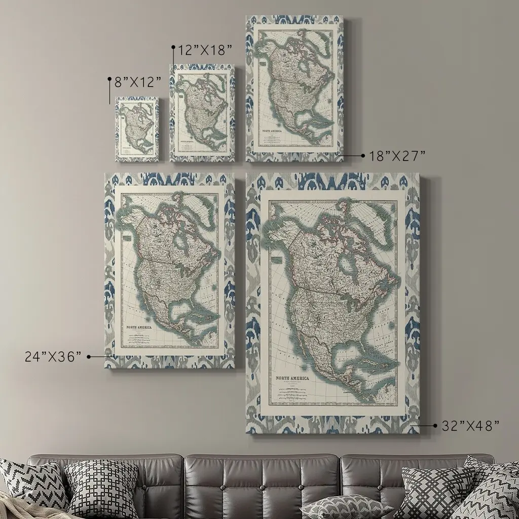 Bordered Map Of North America Premium Gallery Wrapped Canvas - Ready To Hang - 12x18