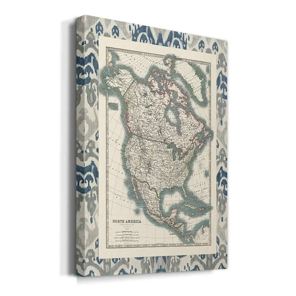 Bordered Map Of North America Premium Gallery Wrapped Canvas - Ready To Hang - 24x36