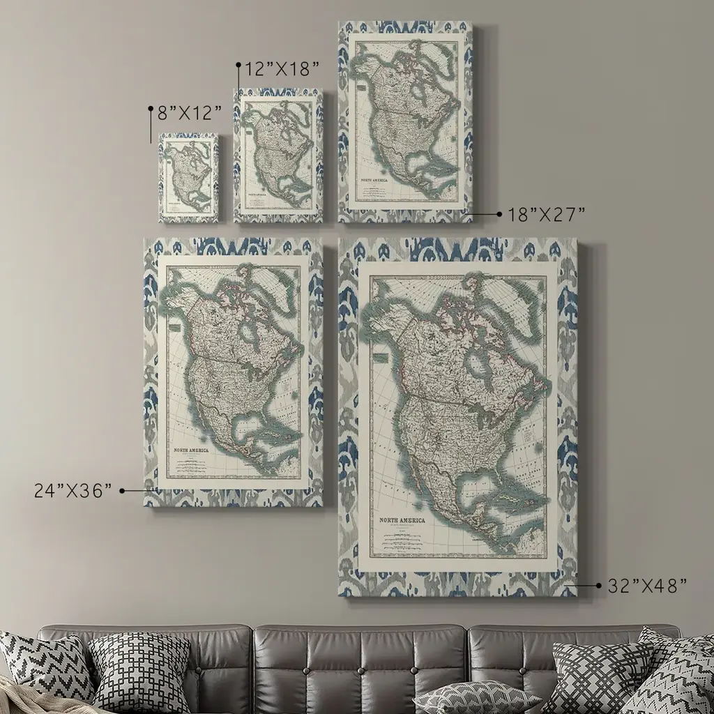 Bordered Map of North America Premium Gallery Wrapped Canvas - Ready to Hang A premium hand stretched gallery wrapped canvas print created to last. Featuring a beveled a solid wood stretcher bar, each piece comes ready to hand 6 SIZES AVAILABLE 8''X12'' - Overall Size 12''X18'' - Overall Size 18''X27'' - Overall Size 24''x36'' - Overall Size 32''x48'' - Overall Size 40''x60'' - Overall Size Each piece is made to order. Built to Last Each piece comes ready to hang Solid wood stretcher Fade and Water resistant Made domestically