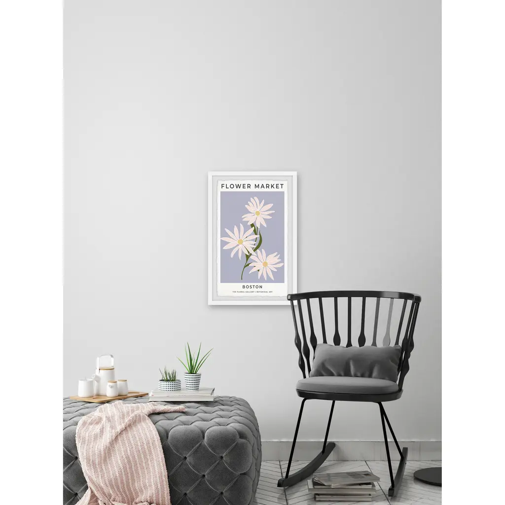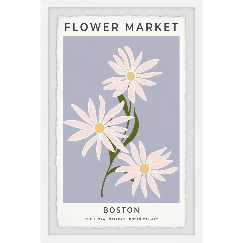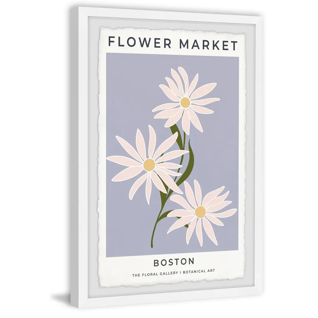 Celebrate your love for Boston with this drawing print that features an advertisement for the flower market in Boston. Featuring three pale pink flowers against a stunning lavender background. Proudly printed in the USA, this piece is printed on high quality archive paper and professionally hand-framed. With wall-mounting hooks included, this artful accent is ready to hang up as soon as it reaches your front door. • Top quality Giclee print on high resolution Archive Paper • Hand cut deckled edges • High quality durable non-warping frame • Finished under shatter resistant plexiglass • Arrives ready to hang • Includes a certificate of authenticity • Printed in the USA